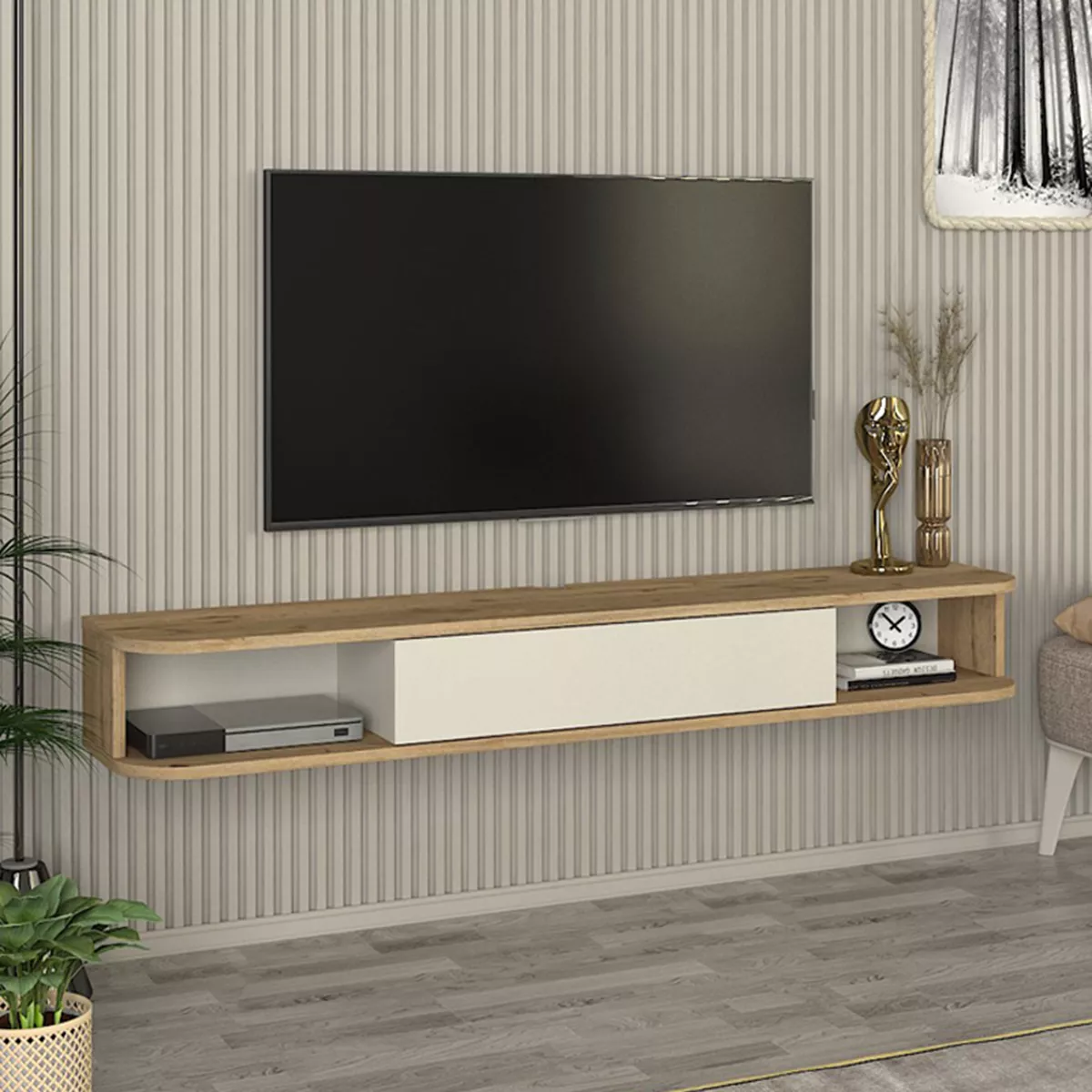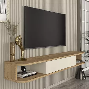 Έπιπλο τηλεόρασης επιτοίχιο Cross Megapap με LED χρώμα sepet oak - sandstone 150x29,6x19,2εκ.