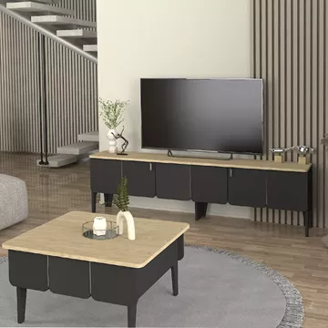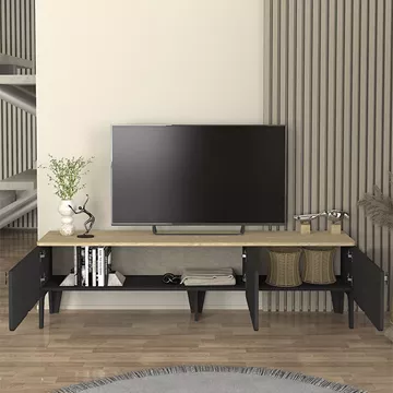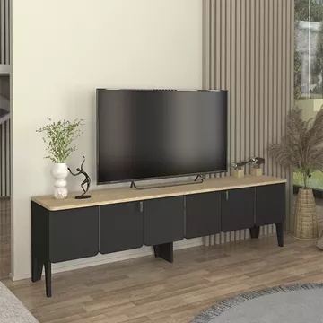 Έπιπλο τηλεόρασης Pedro Megapap χρώμα ανθρακί - rota oak 180x35x50,7εκ.
