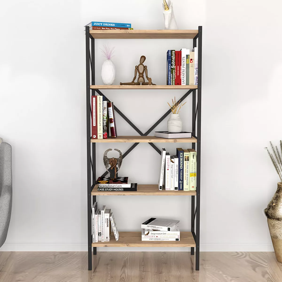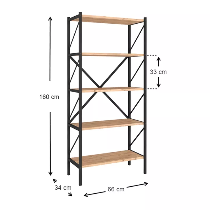 Βιβλιοθήκη Jocasta Megapap μεταλλική - μελαμίνης χρώμα pine oak 66x34x160εκ.