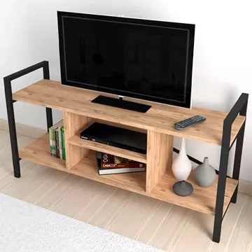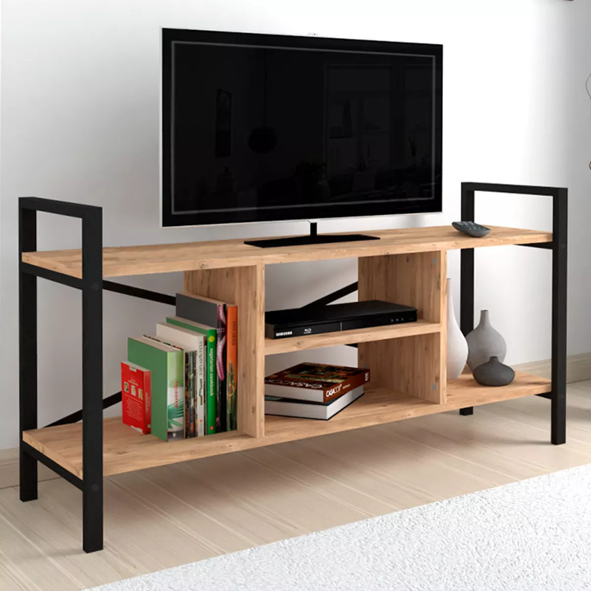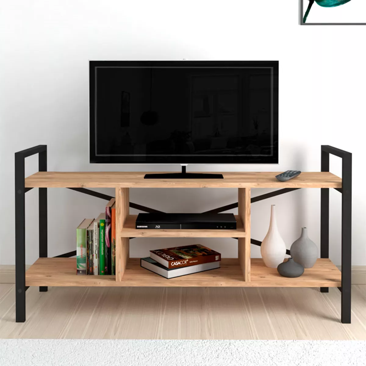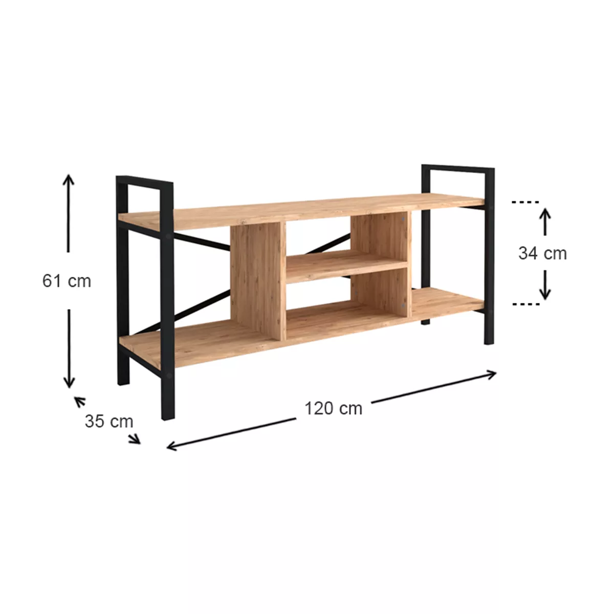 Έπιπλο τηλεόρασης Santana Megapap μεταλλικό - μελαμίνης χρώμα μαύρο - pine oak 120x35x61εκ.