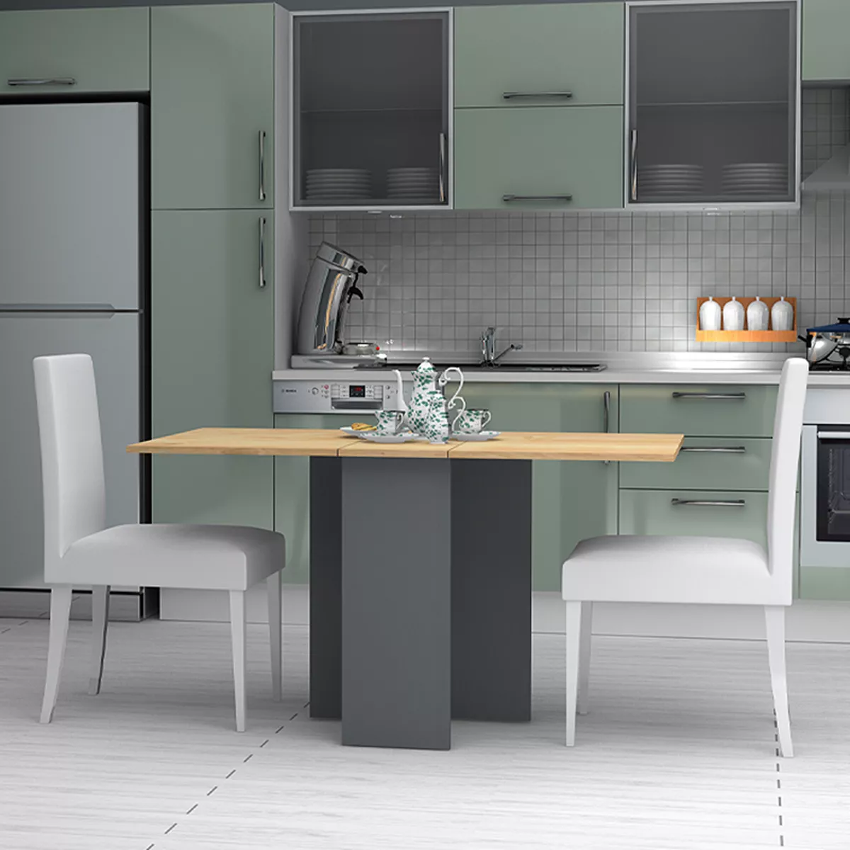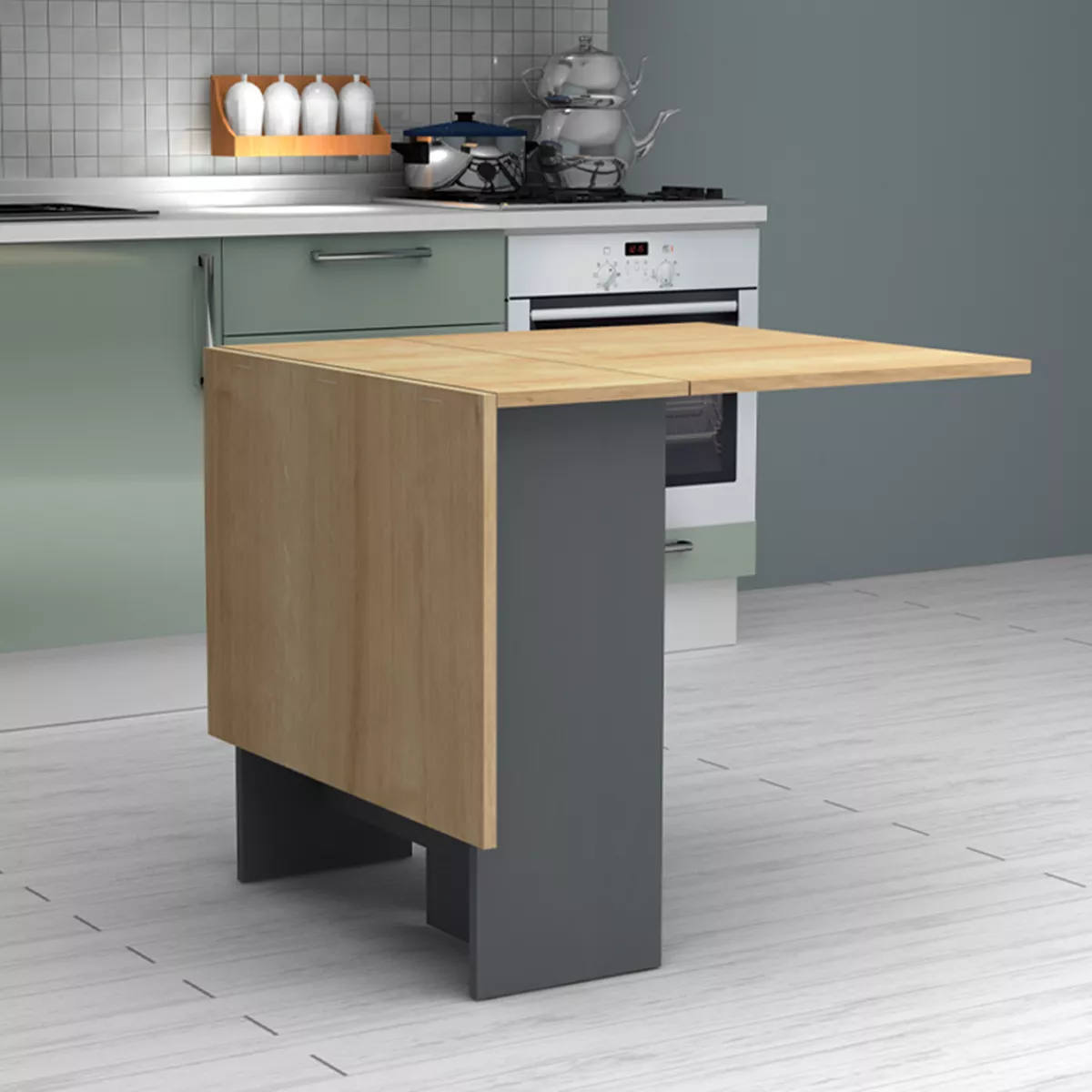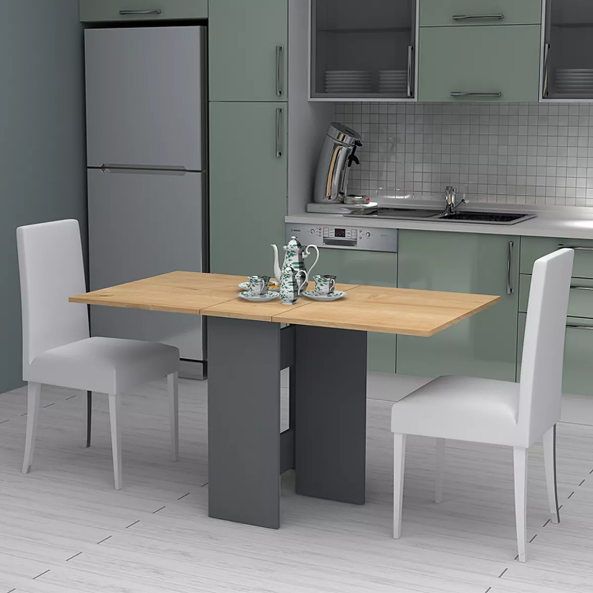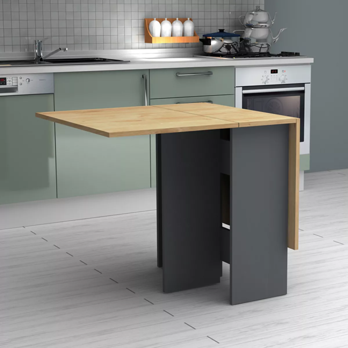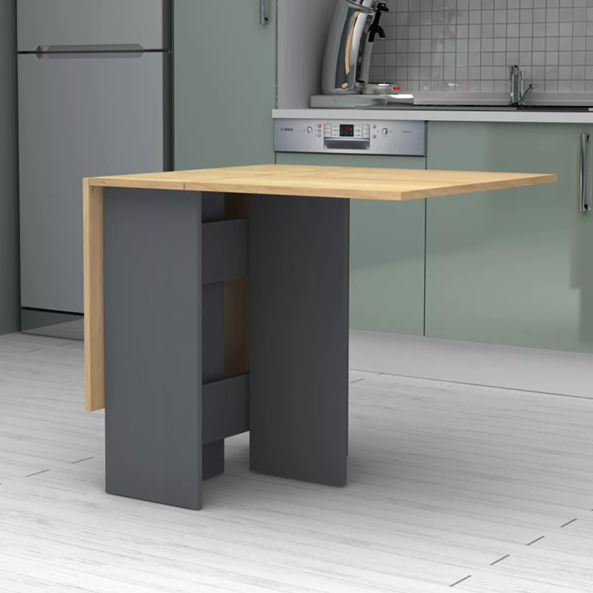 Τραπέζι Pepe Megapap επεκτεινόμενο χρώμα ανθρακί - φυσικό οξιάς 28(56+56)x77x75εκ.