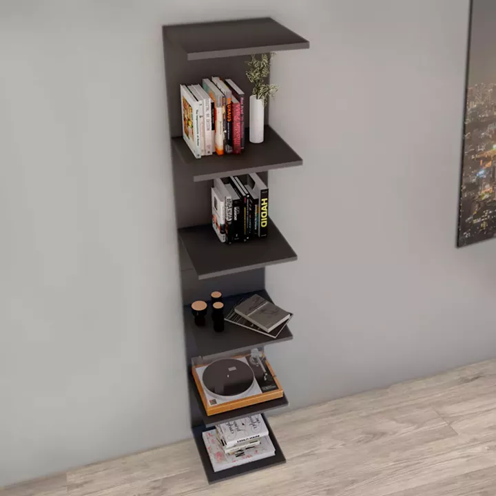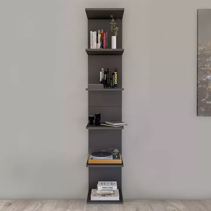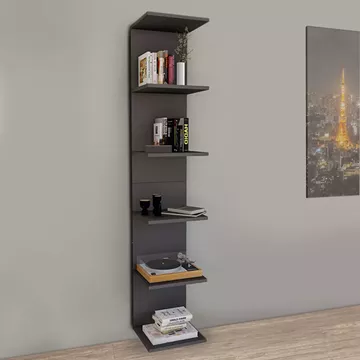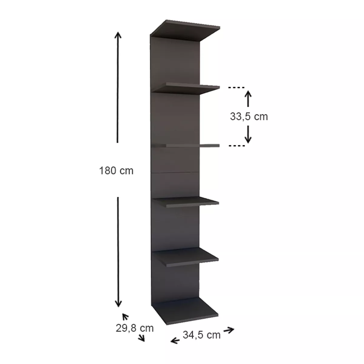 Βιβλιοθήκη - Ραφιέρα τοίχου μελαμίνης Ogden Megapap χρώμα ανθρακί 34,5x30x180εκ.