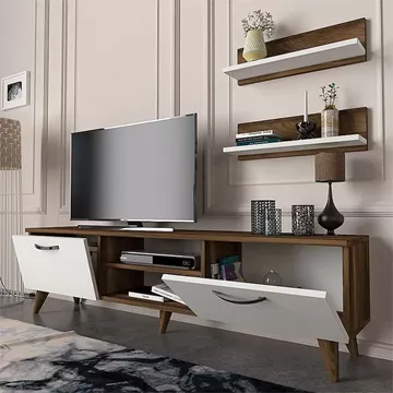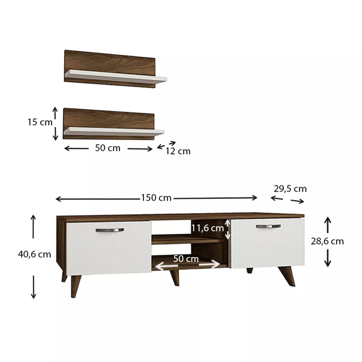 Έπιπλο τηλεόρασης Colin Megapap από μελαμίνη χρώμα λευκό - καρυδί 150x30x40,6εκ.