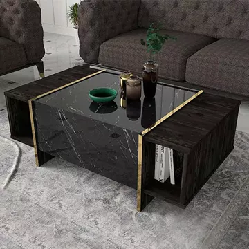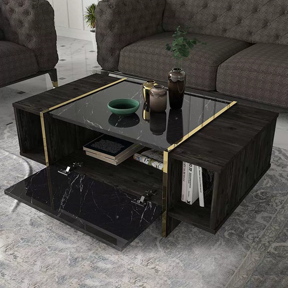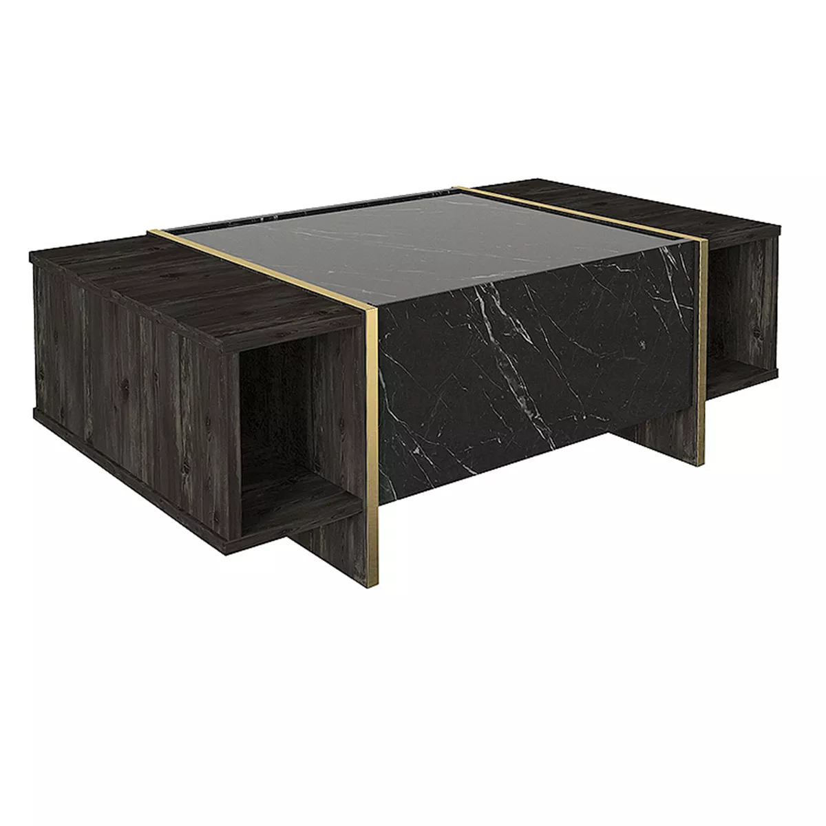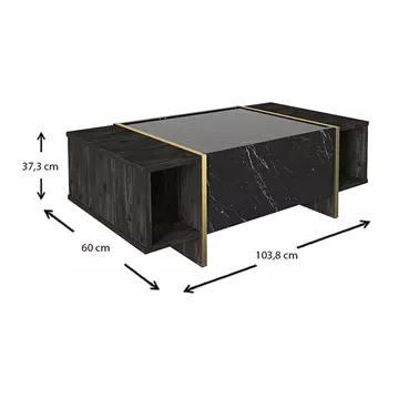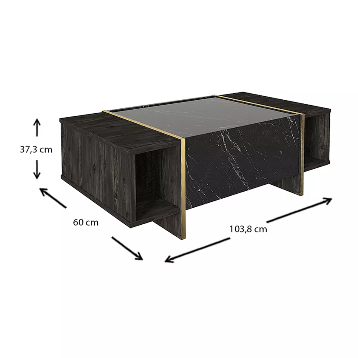 Τραπεζάκι σαλονιού Veyron Megapap από μελαμίνη χρώμα μαύρο rebab - μαύρο εφέ μαρμάρου 104x60x37,3εκ.