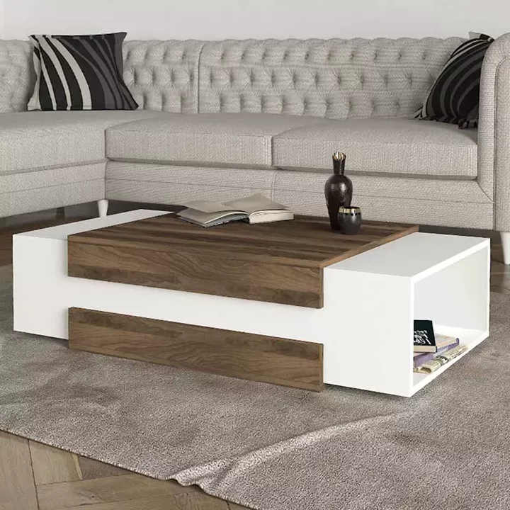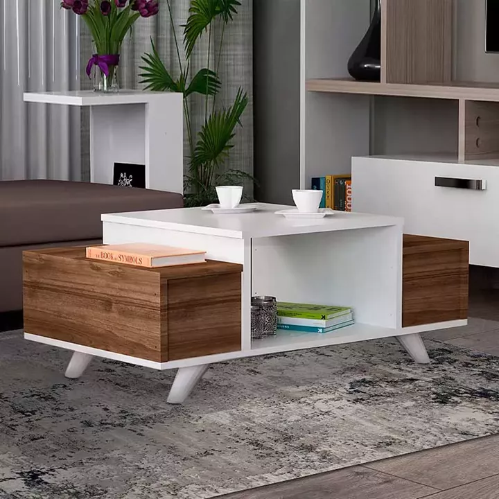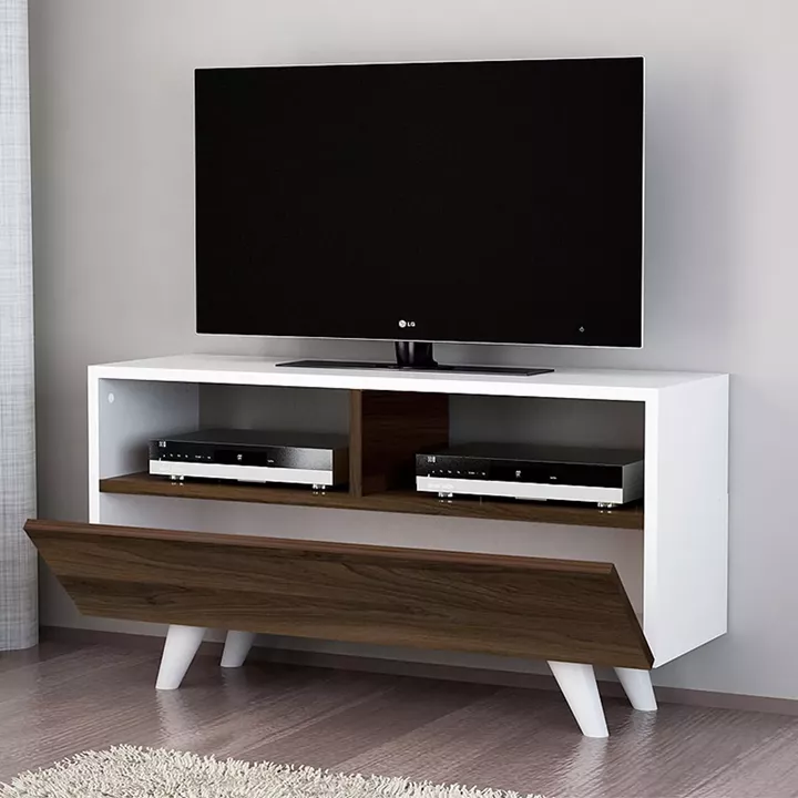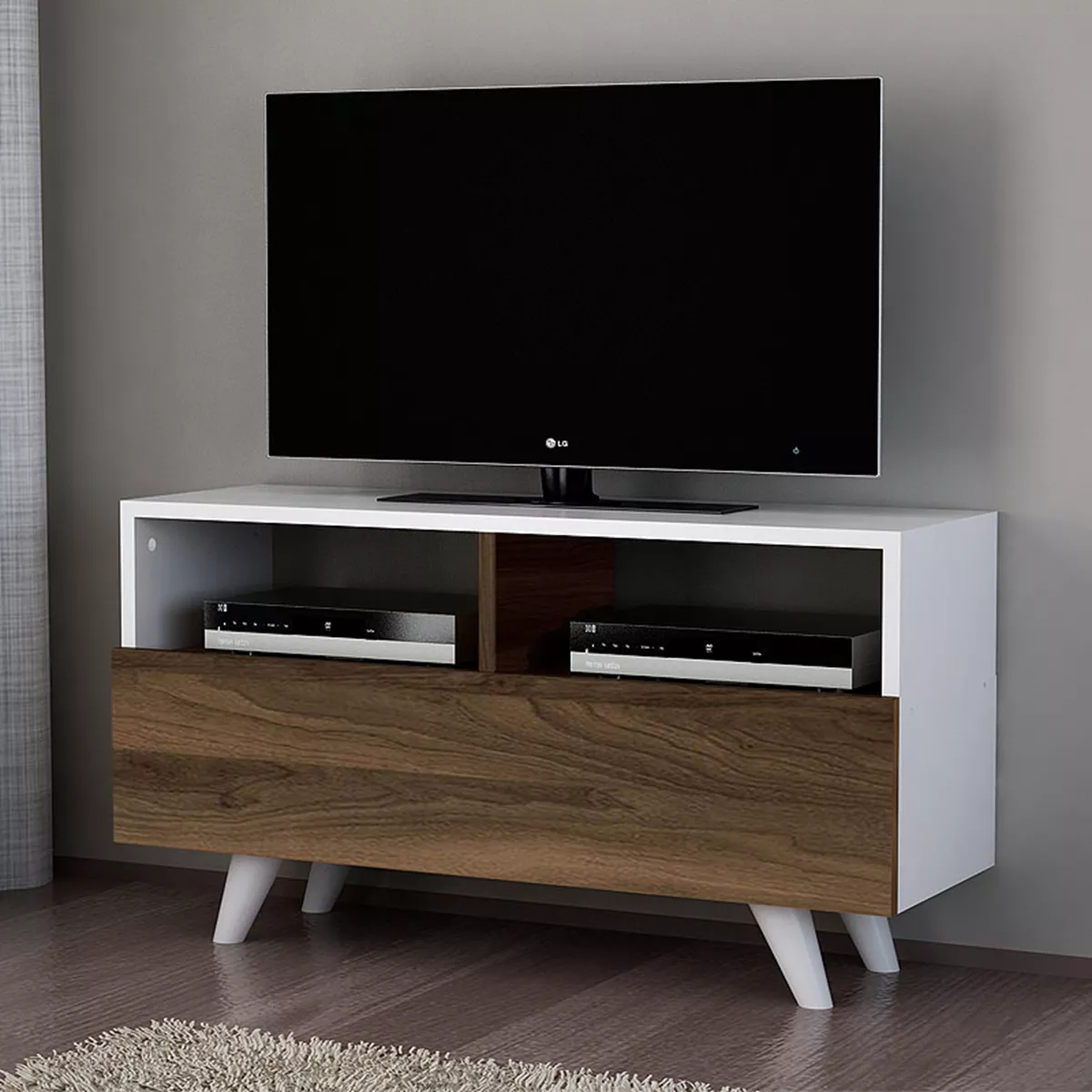Έπιπλο τηλεόρασης Novela Megapap από μελαμίνη χρώμα λευκό - καρυδί 90x29,5x50εκ.