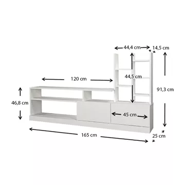 Σύνθεση τηλεόρασης Pesaro Megapap από μελαμίνη χρώμα λευκό 165x25x91,3εκ.