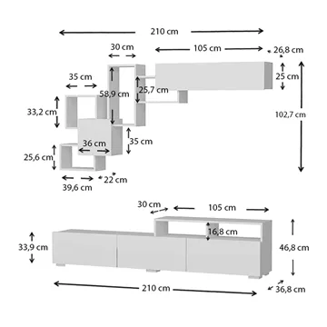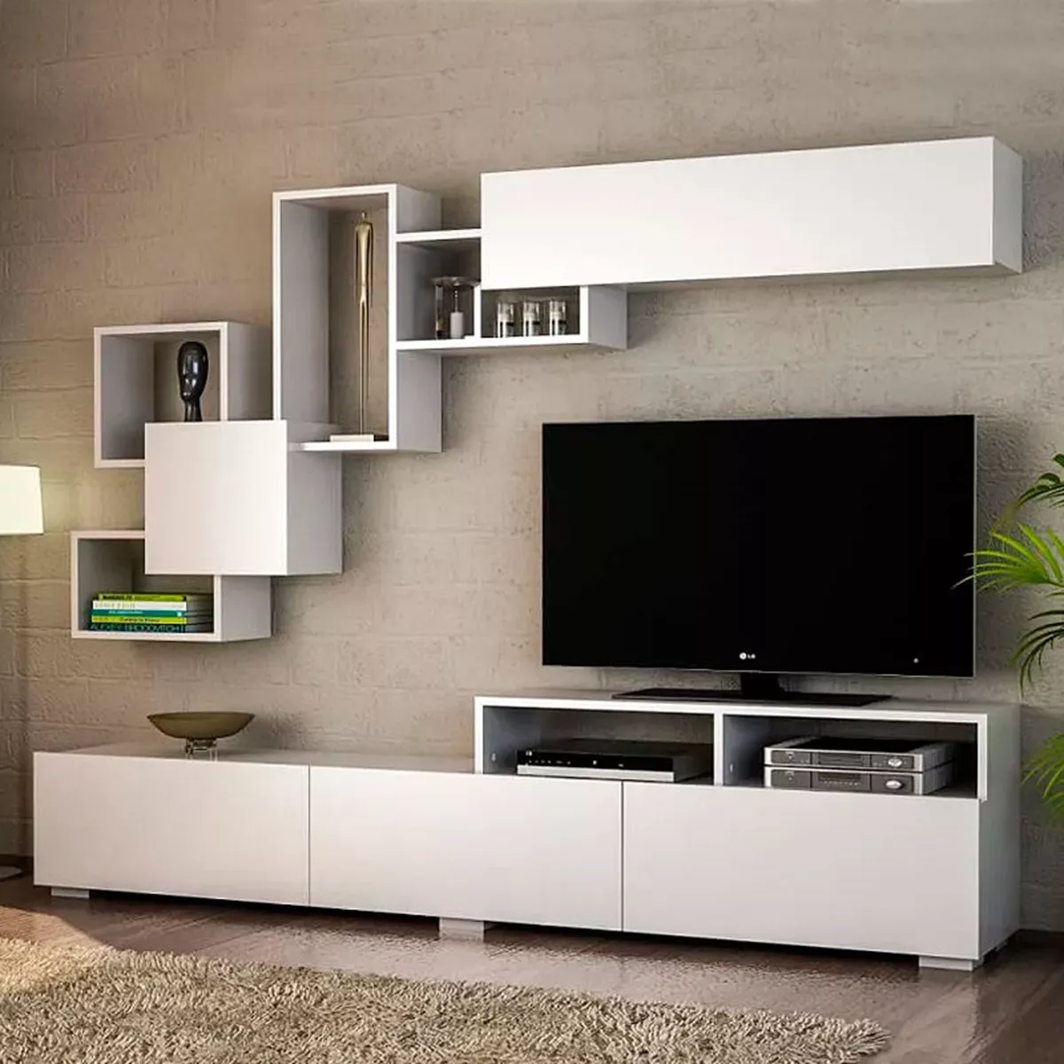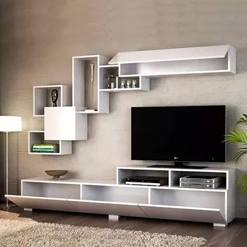 Σύνθεση τηλεόρασης Stamatia Megapap από μελαμίνη χρώμα λευκό 210x36,8x46,8εκ.