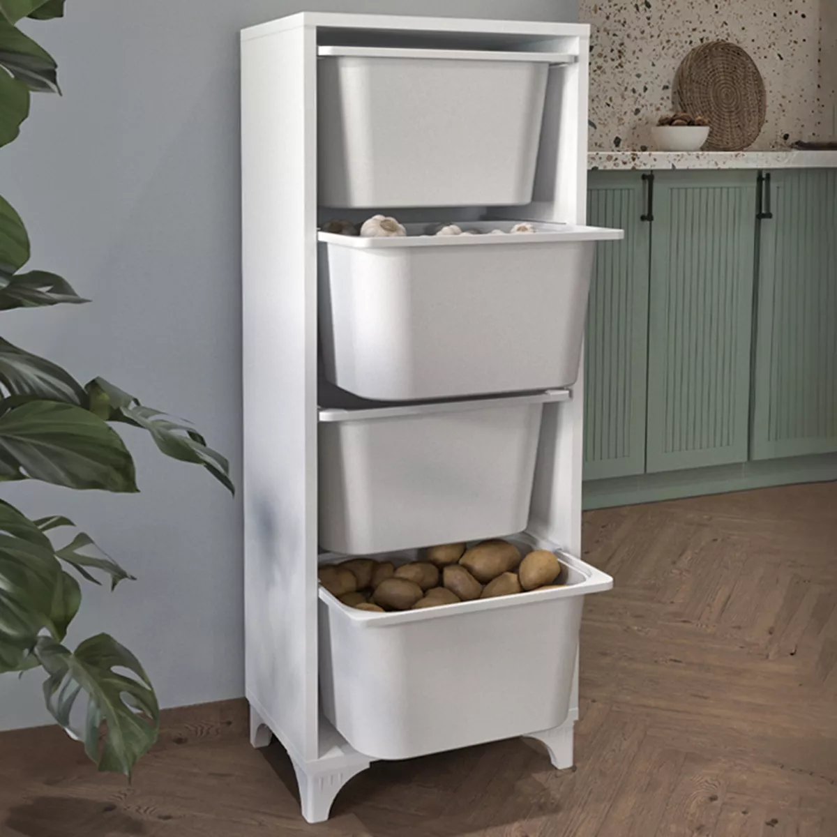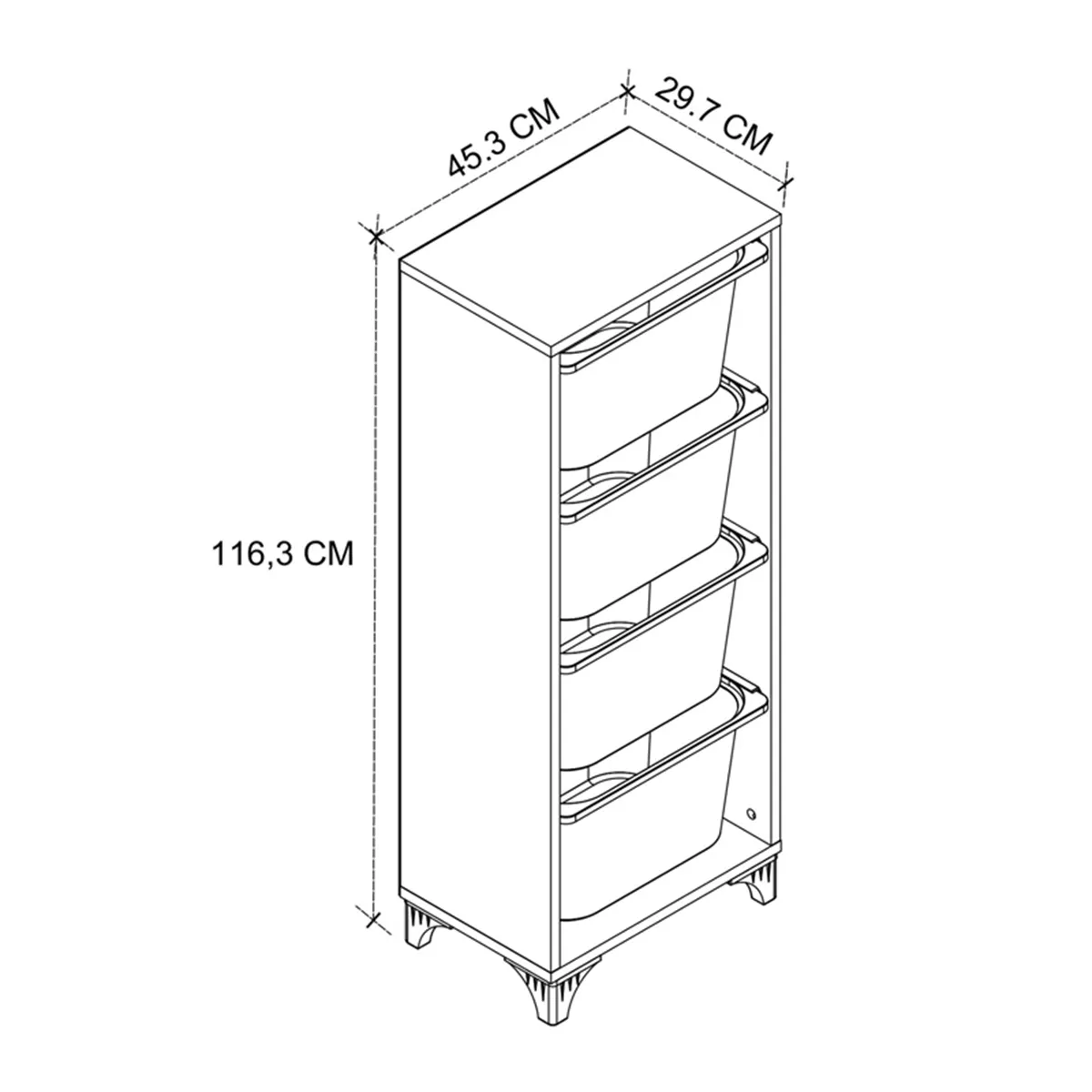 Συρταριέρα κουζίνας - μπάνιου Kayra I Megapap με 4 συρτάρια χρώμα λευκό 45,3x29,7x116,3εκ.