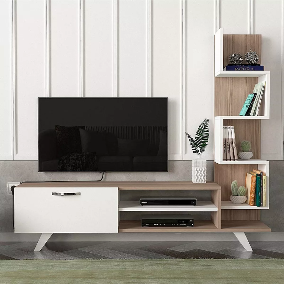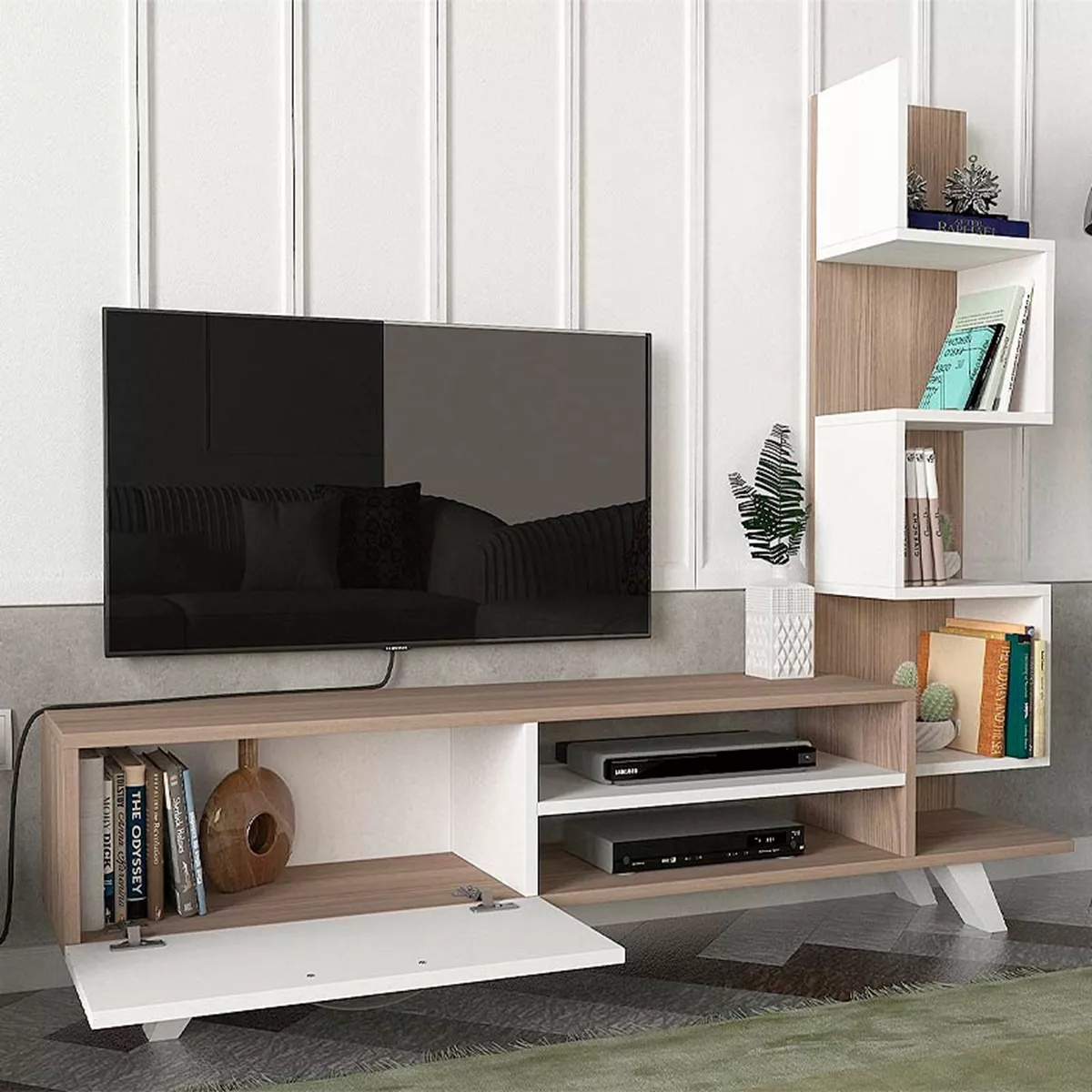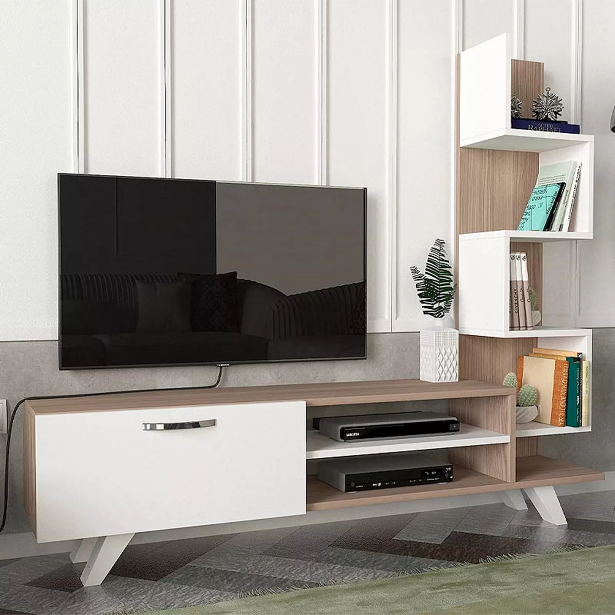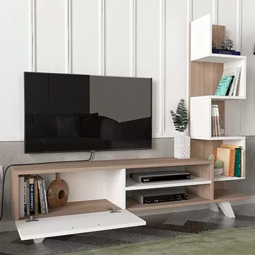 Έπιπλο τηλεόρασης Ceren Megapap από μελαμίνη χρώμα λευκό - cordoba 149,5x31x131,6εκ.