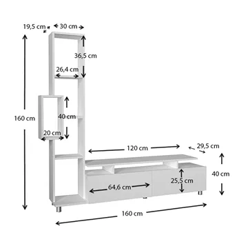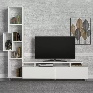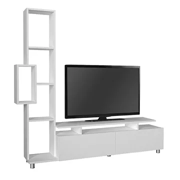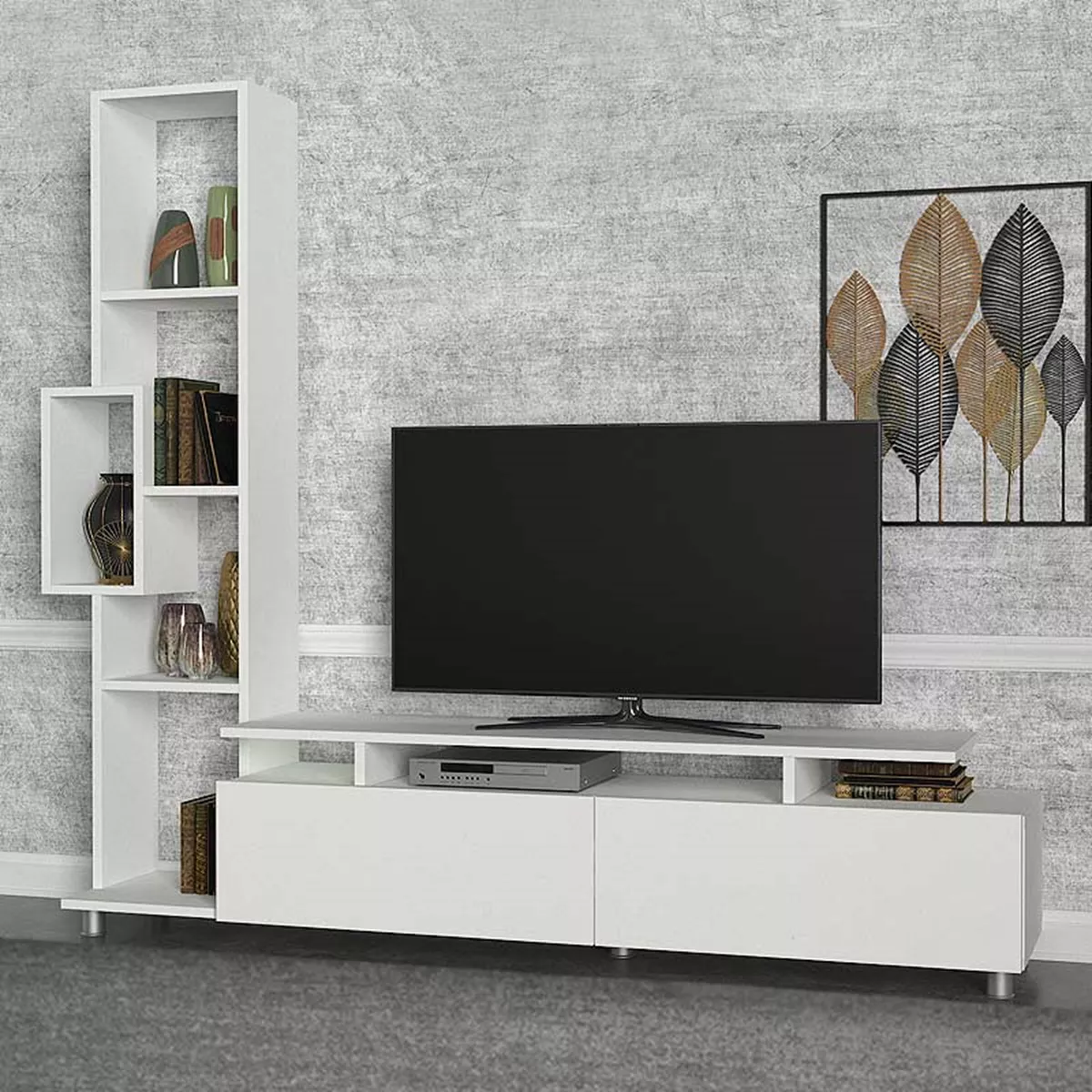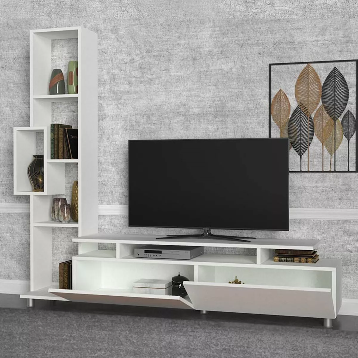Σύνθεση τηλεόρασης Tulip Megapap από μελαμίνη χρώμα λευκό 160x29,5x160εκ.