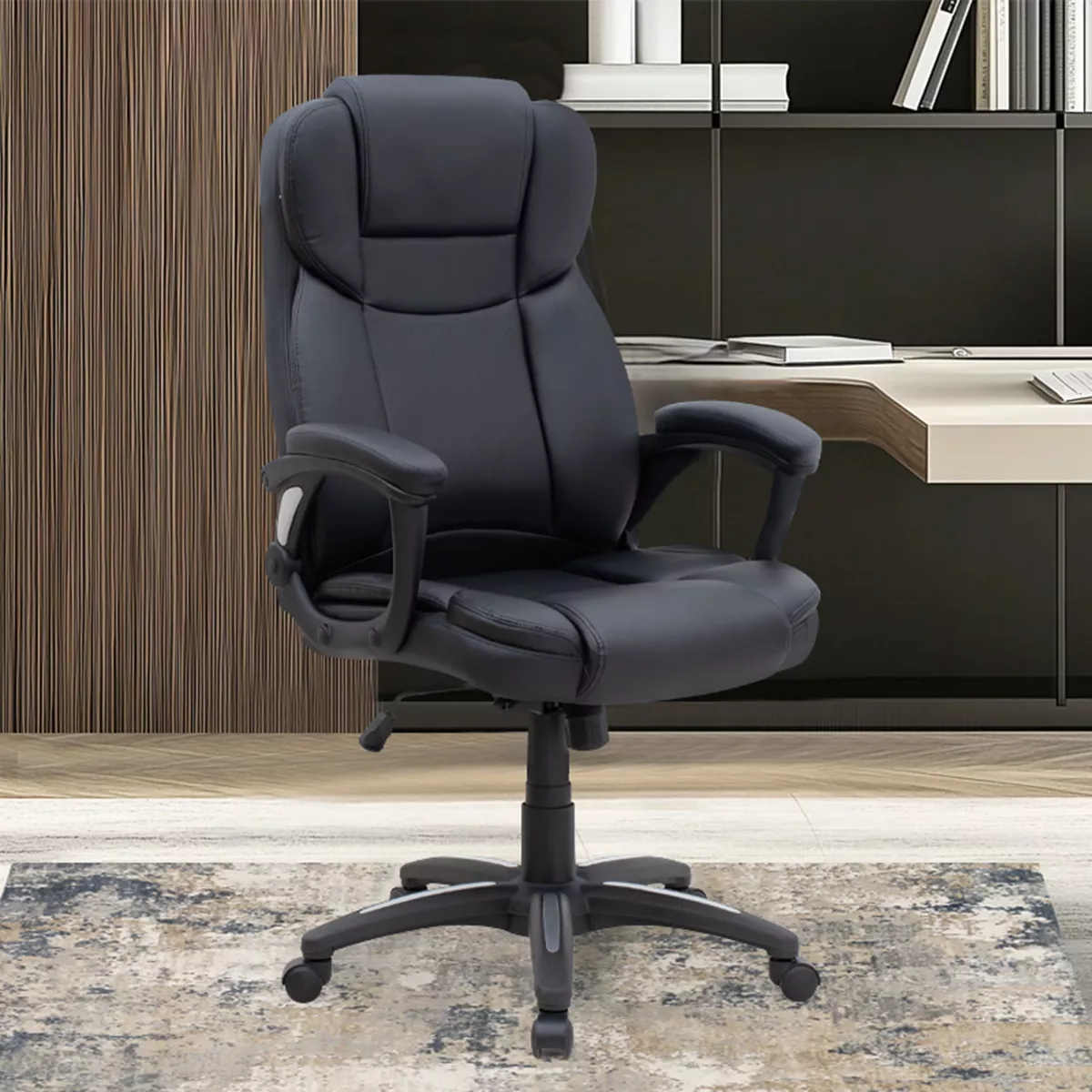 Καρέκλα γραφείου διευθυντική Morgan Megapap από τεχνόδερμα χρώμα μαύρο 67x65x112/122εκ.