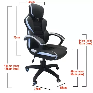 Καρέκλα Γραφείου ArteLibre Gaming ΚΛΕΟΝΙΚΗ Μαύρο/Λευκό 65x72x118-126cm