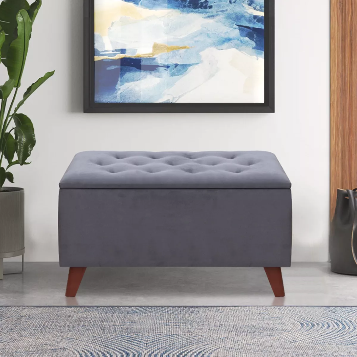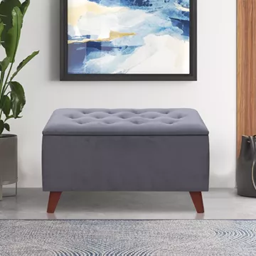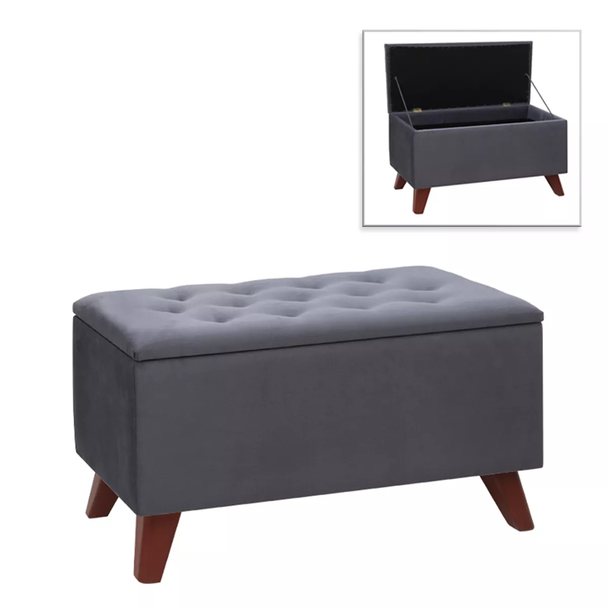 Σκαμπώ - Ταμπουρέ Lotus Megapap βελούδινο χρώμα ανθρακί 90x40x50εκ.