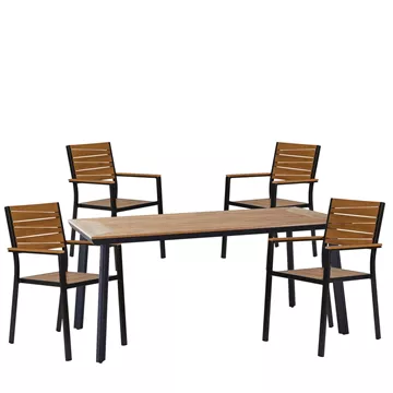 Σετ Τραπεζαρία Κήπου ArteLibre EPUPA Γκρι/Καρυδί Αλουμίνιο/Ξύλο Με 4 Πολυθρόνες 14990192
