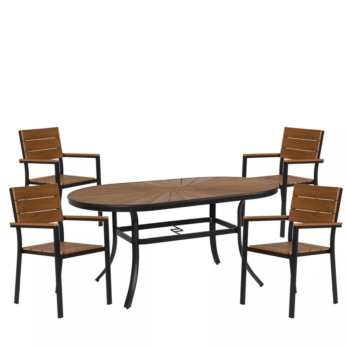 Σετ Τραπεζαρία Κήπου ArteLibre RUSUMO Μαύρο/Καρυδί Αλουμίνιο/Ξύλο Με 4 Πολυθρόνες 14990193