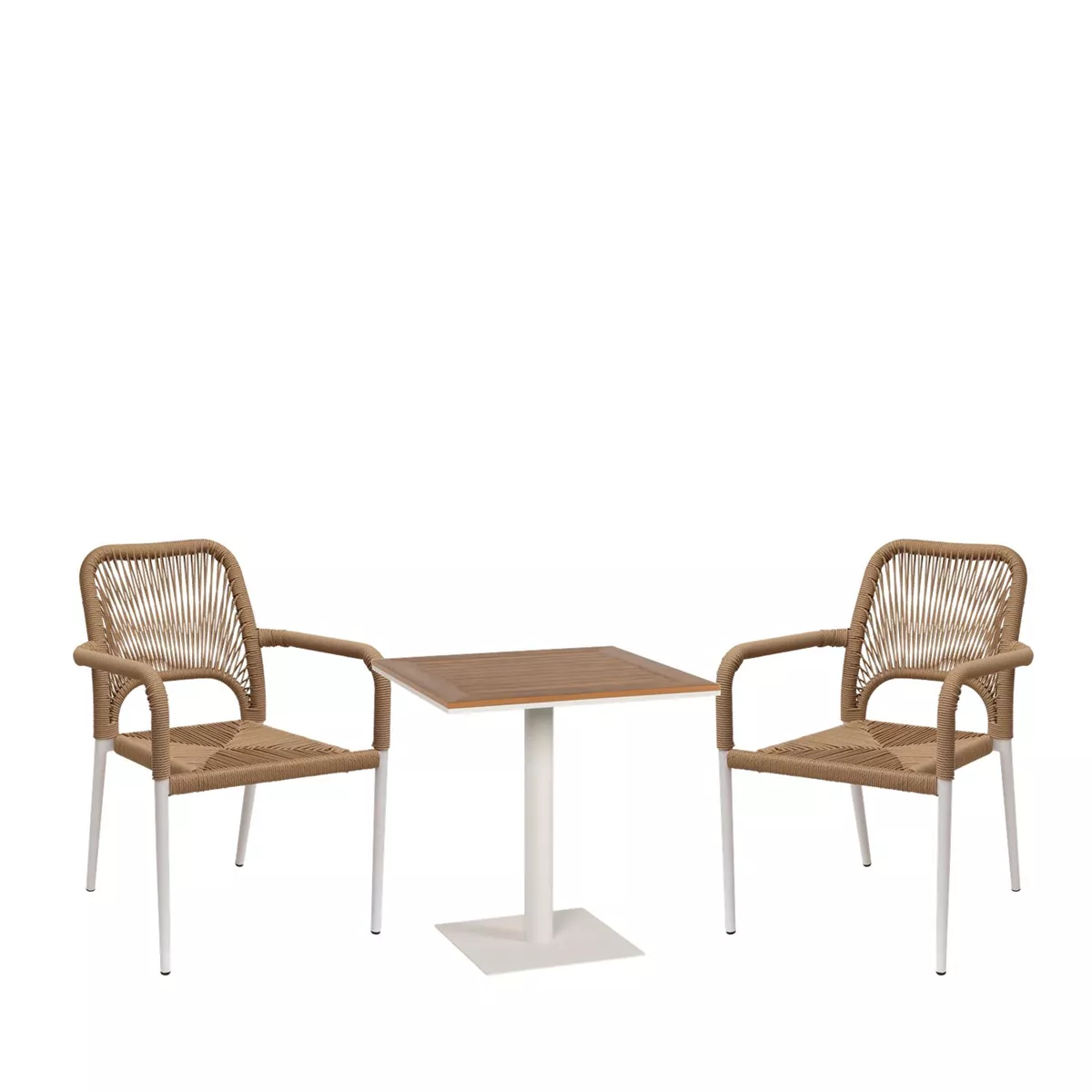 Σετ Τραπεζαρία Κήπου ArteLibre NAMIBIA Λευκό/Καρυδί Αλουμίνιο/Ξύλο Με 2 Πολυθρόνες 14990268