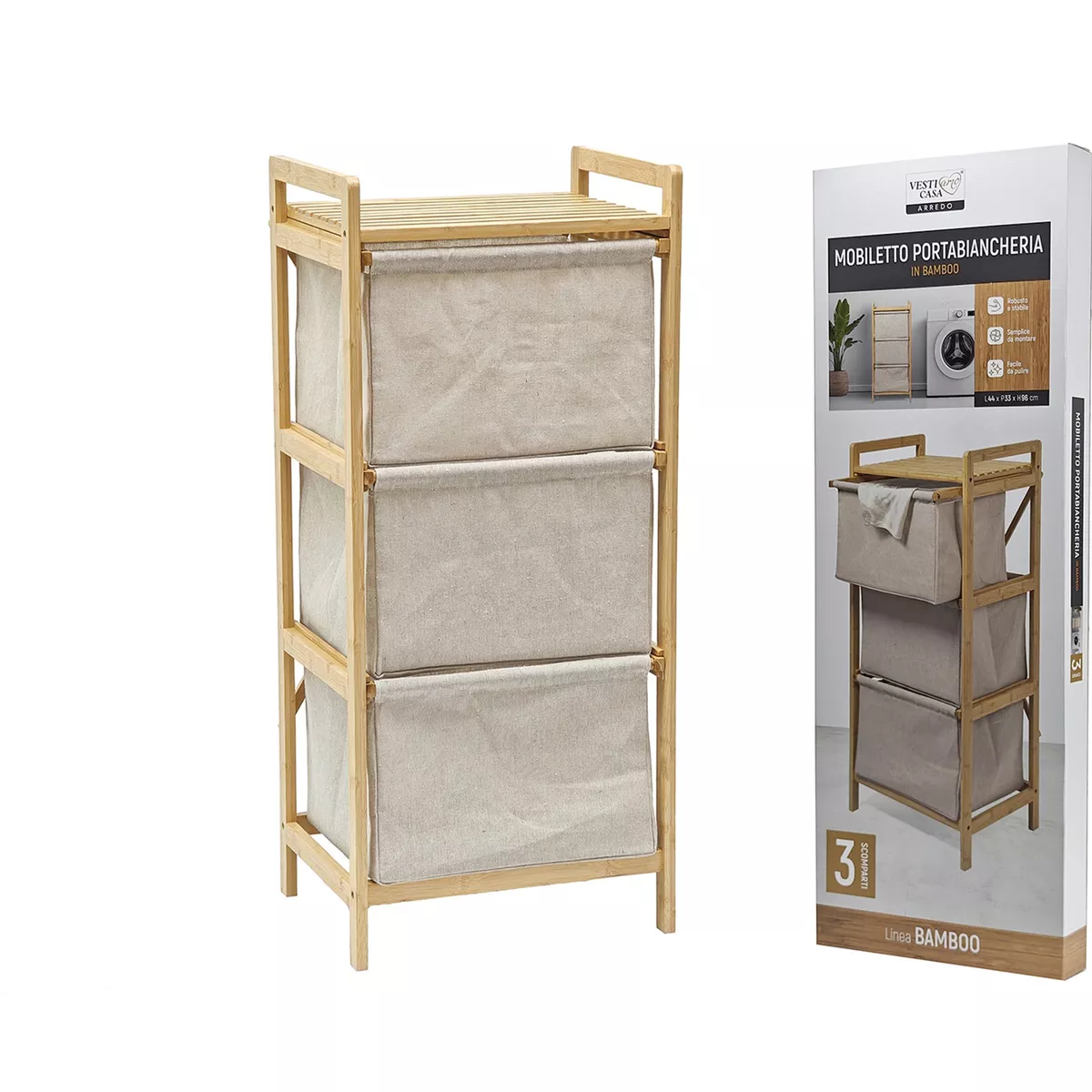 Συρταριέρα μπεζ/ξύλο ύφασμα/μπαμπού 44x33x96cm