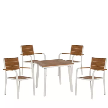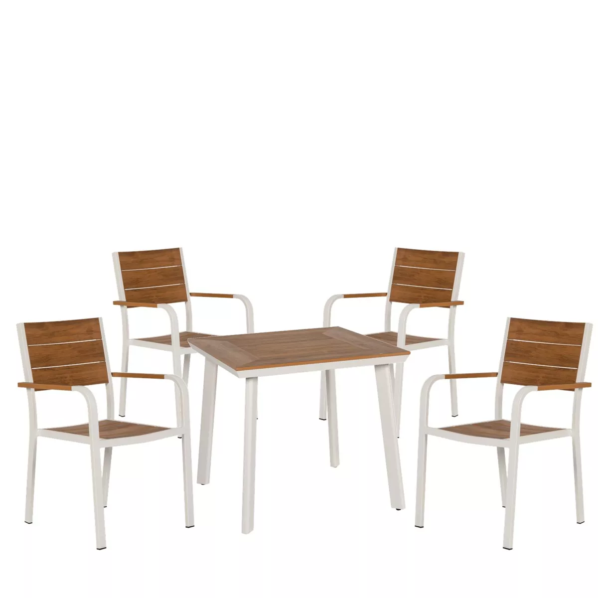 Σετ Τραπεζαρία Κήπου ArteLibre EPUPA Λευκό/Καρυδί Αλουμίνιο/Ξύλο Με 4 Πολυθρόνες 14990200