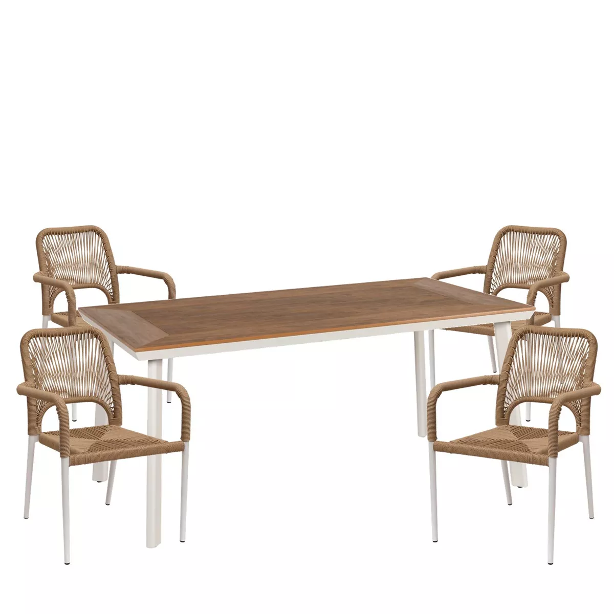 Σετ Τραπεζαρία Κήπου ArteLibre EPUPA Λευκό/Καρυδί Αλουμίνιο/Ξύλο Με 4 Πολυθρόνες 14990247
