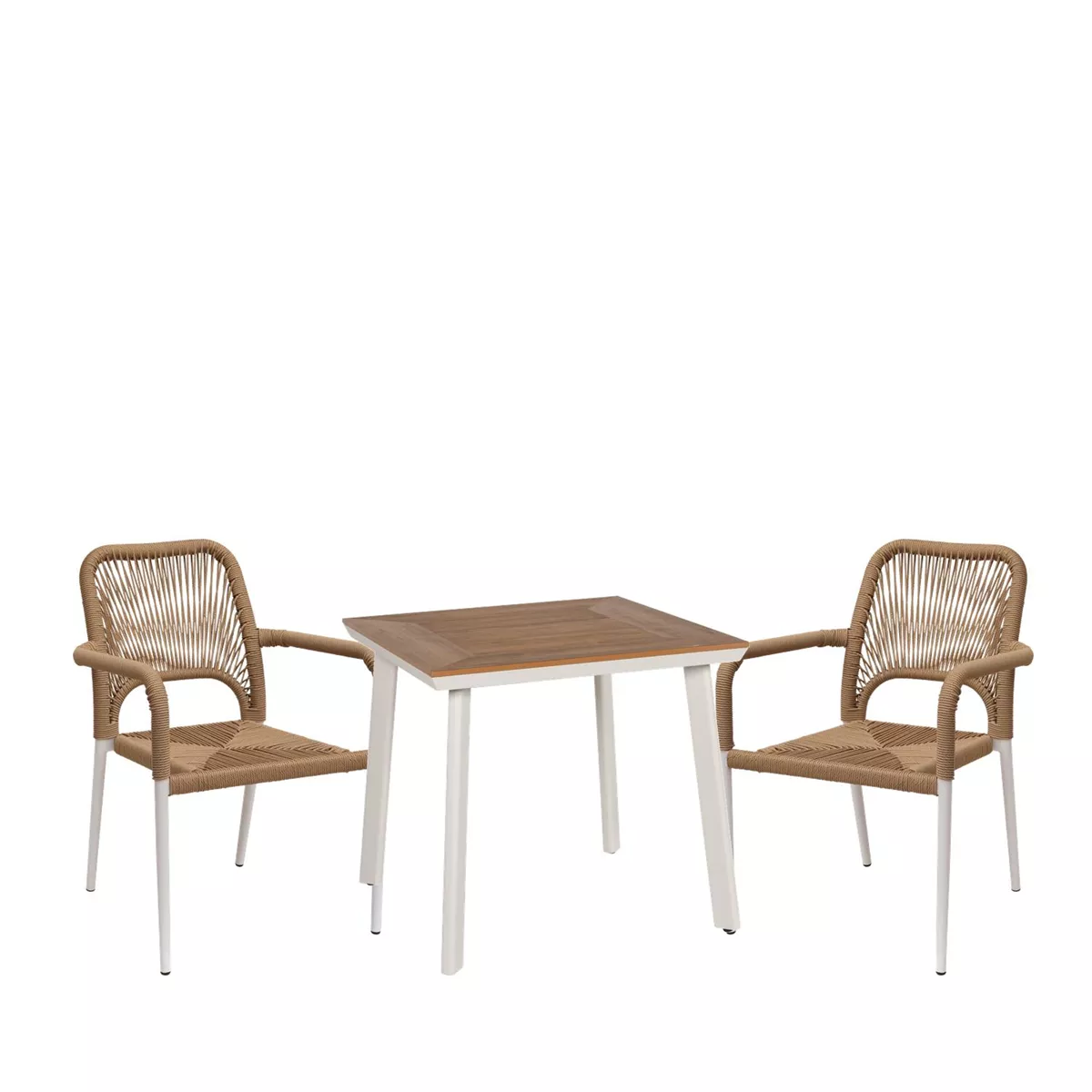 Σετ Τραπεζαρία Κήπου ArteLibre EPUPA Λευκό/Καρυδί Αλουμίνιο/Ξύλο Με 2 Πολυθρόνες 14990267