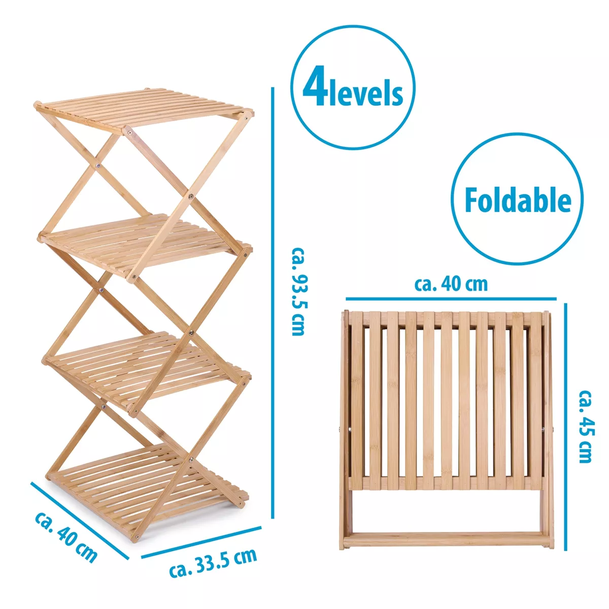 Ράφι Μπάνιου Μπαμπού Αναδιπλούμενο 4 Επιπέδων
