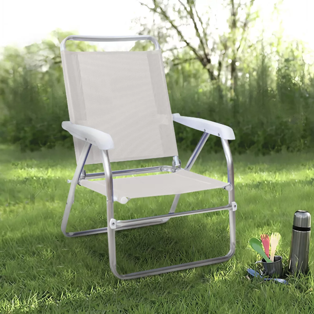 Καρεκλάκι παραλίας Alu Megapap αλουμινίου χρώμα λευκό 54x52x80εκ.