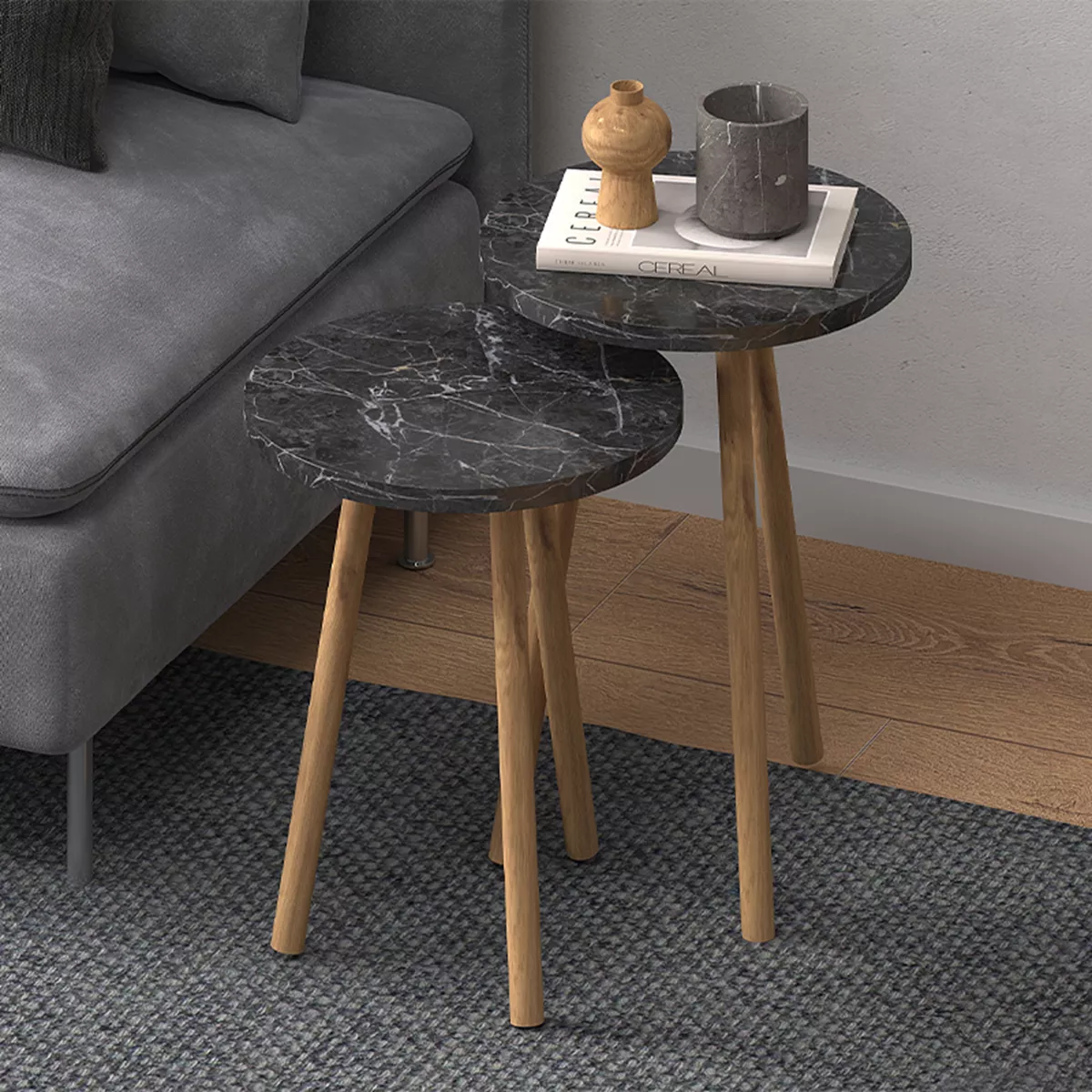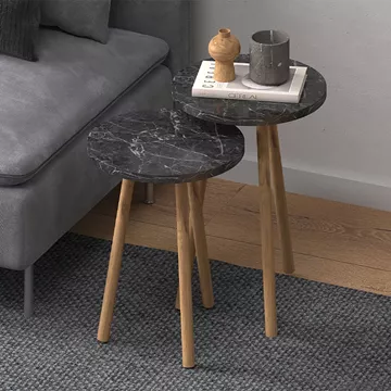 Τραπεζάκια βοηθητικά σετ 2 τμχ Roma Megapap χρώμα μαύρο εφέ μαρμάρου Ø34x46εκ.