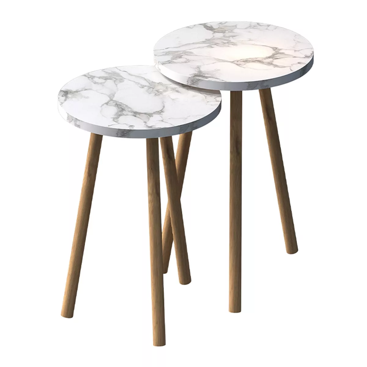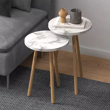 Τραπεζάκια βοηθητικά σετ 2 τμχ Roma Megapap χρώμα λευκό εφέ μαρμάρου Ø34x46εκ.