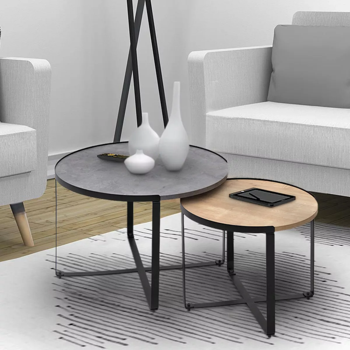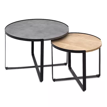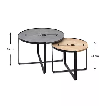 Σετ τραπεζάκια σαλονιού Davis Megapap 2τμχ. χρώμα γκρι σκυροδέματος/φυσικό οξιάς 70x69x46εκ.