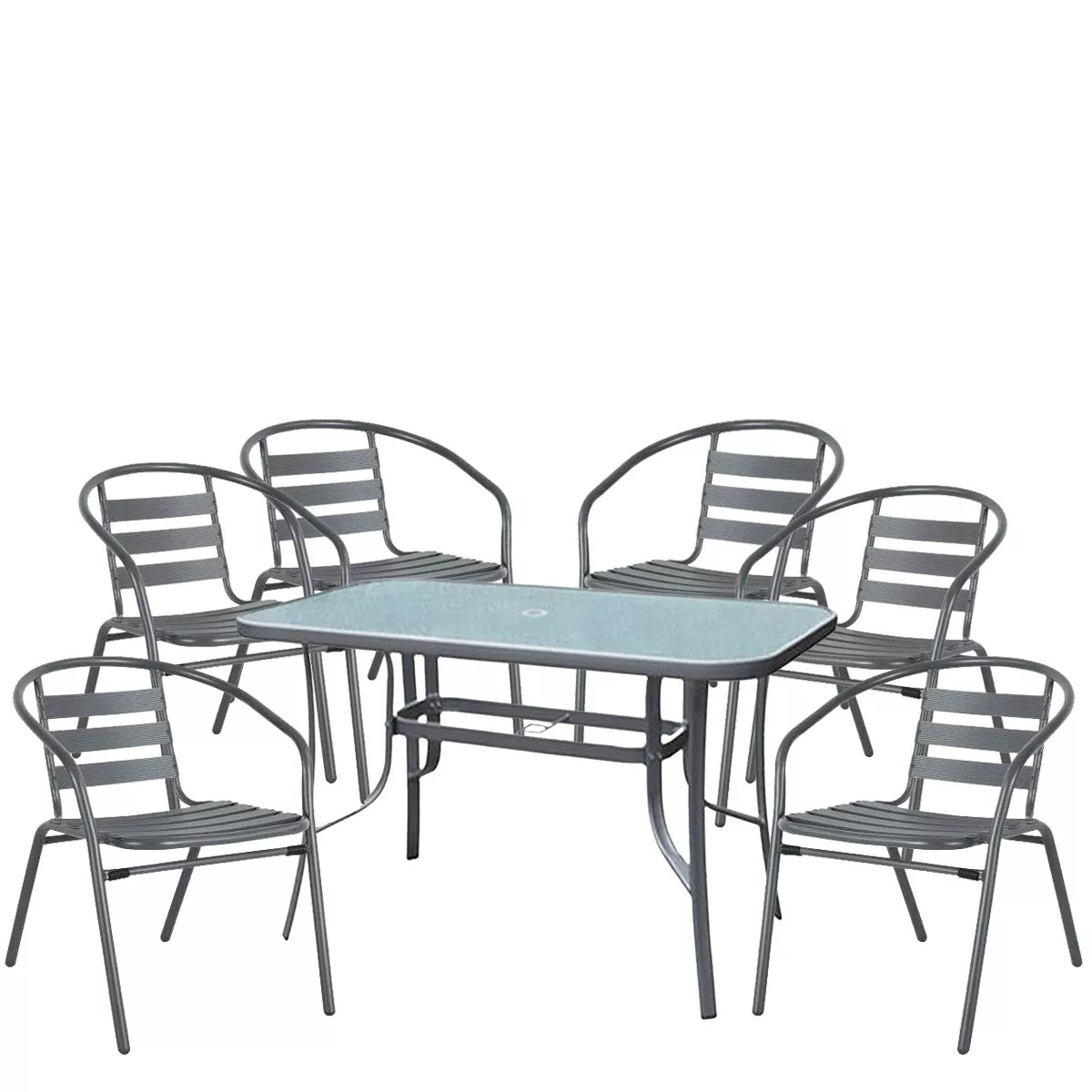 Σετ Τραπεζαρία Κήπου ArteLibre SUN Μέταλλο Γκρι Με 6 Πολυθρόνες 14990108
