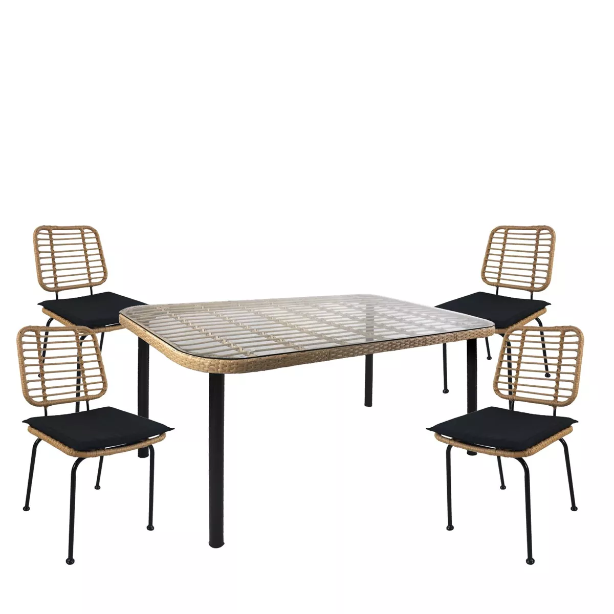 Σετ Τραπεζαρία Κήπου ArteLibre AMPIUS Φυσικό/Μαύρο Μέταλλο/Rattan/Γυαλί Με 4 Καρέκλες 14990311