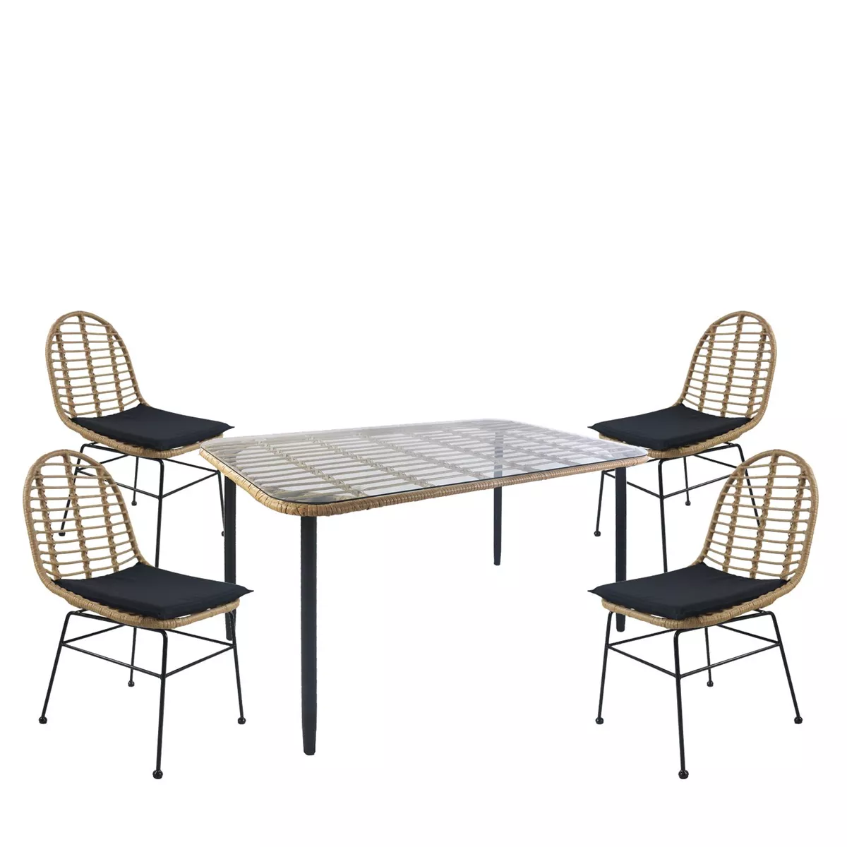 Σετ Τραπεζαρία Κήπου ArteLibre ANNIUS Φυσικό/Μαύρο Μέταλλο/Rattan/Γυαλί Με 4 Καρέκλες 14990285