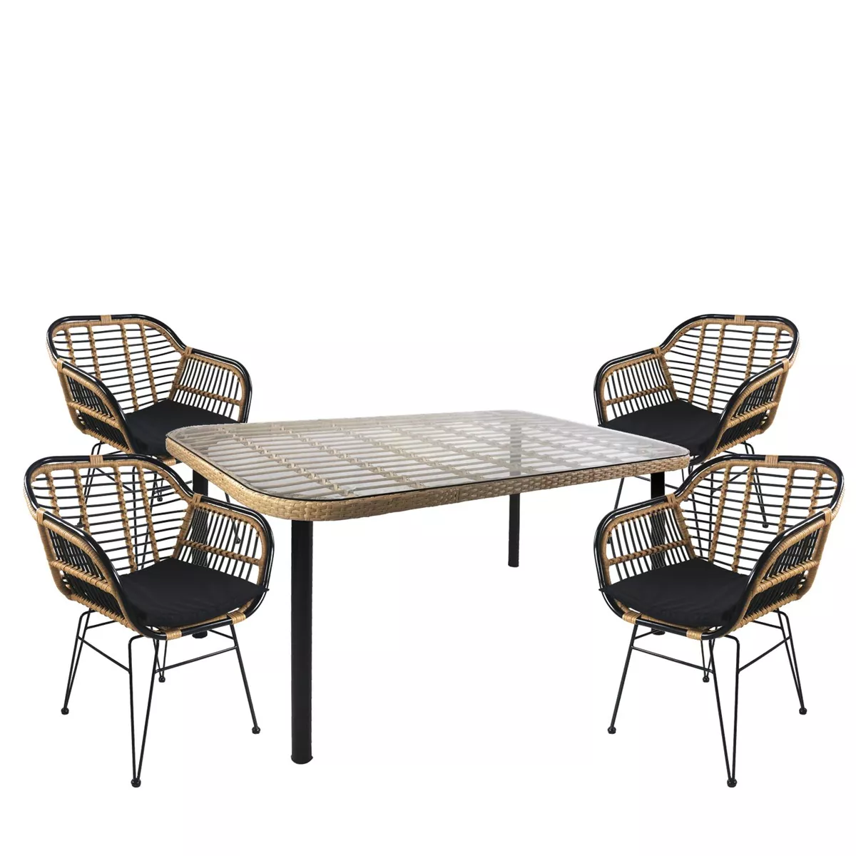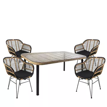 Σετ Τραπεζαρία Κήπου ArteLibre AMPIUS Φυσικό/Μαύρο Μέταλλο/Rattan/Γυαλί Με 4 Καρέκλες 14990291