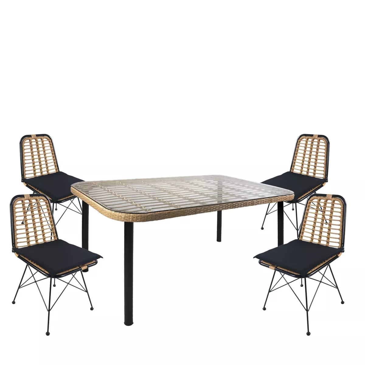 Σετ Τραπεζαρία Κήπου ArteLibre AMPIUS Φυσικό/Μαύρο Μέταλλο/Rattan/Γυαλί Με 4 Καρέκλες 14990299