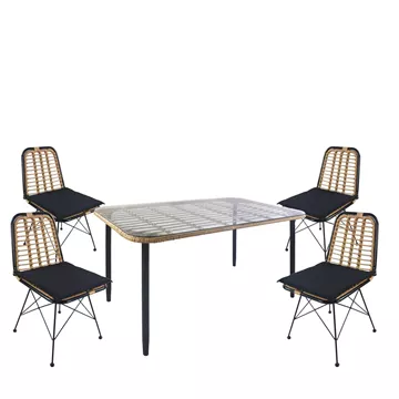 Σετ Τραπεζαρία Κήπου ArteLibre ANNIUS Φυσικό/Μαύρο Μέταλλο/Rattan/Γυαλί Με 4 Καρέκλες 14990301