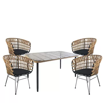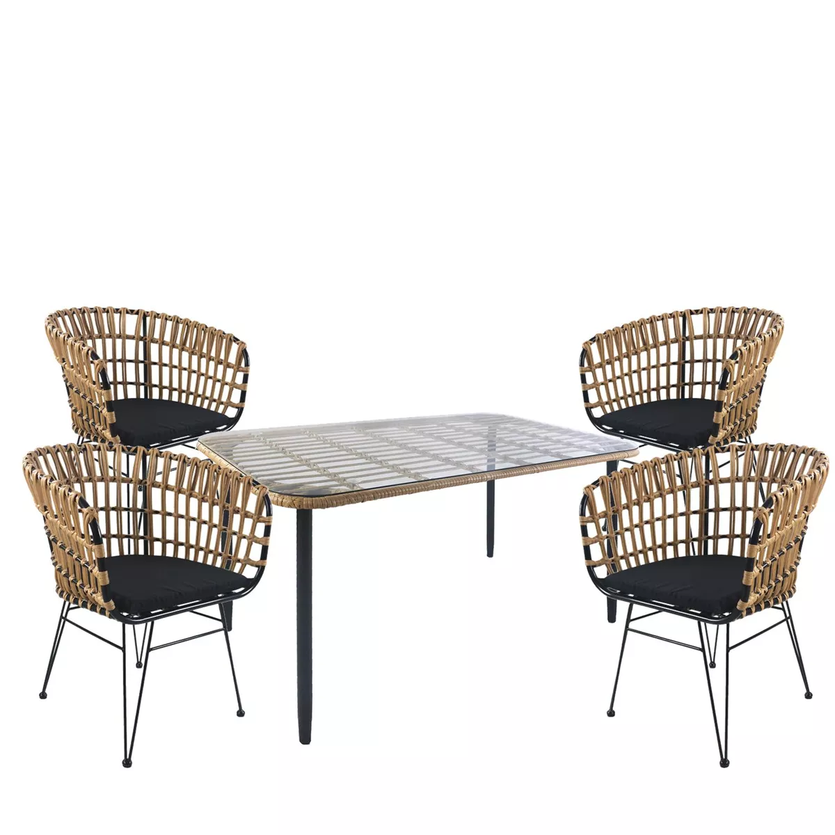 Σετ Τραπεζαρία Κήπου ArteLibre ANNIUS Φυσικό/Μαύρο Μέταλλο/Rattan/Γυαλί Με 4 Καρέκλες 14990305
