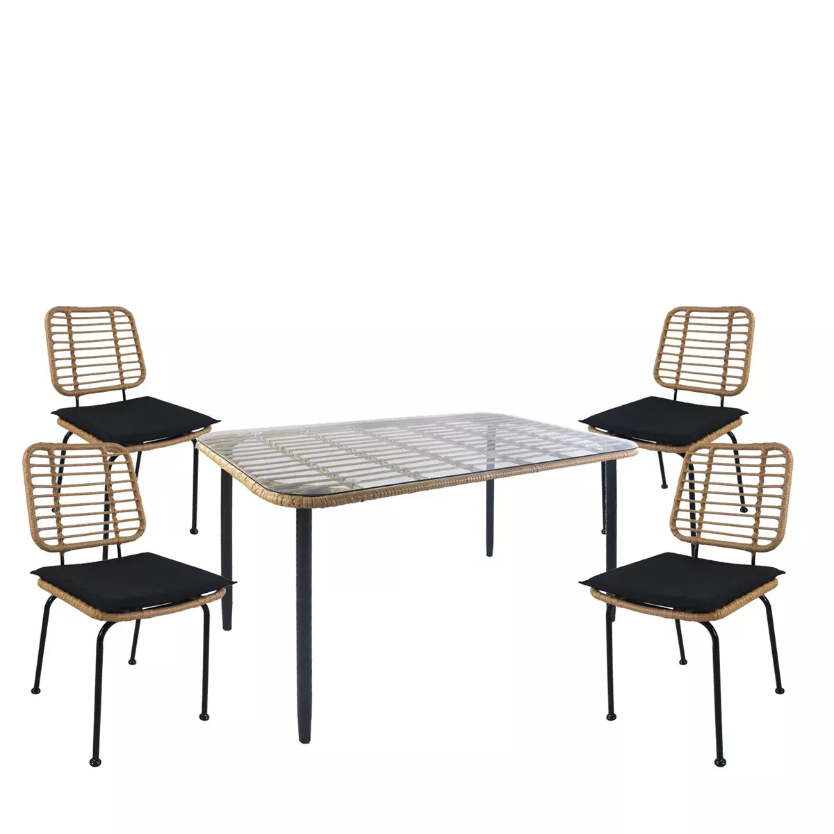 Σετ Τραπεζαρία Κήπου ArteLibre ANNIUS Φυσικό/Μαύρο Μέταλλο/Rattan/Γυαλί Με 4 Καρέκλες 14990313