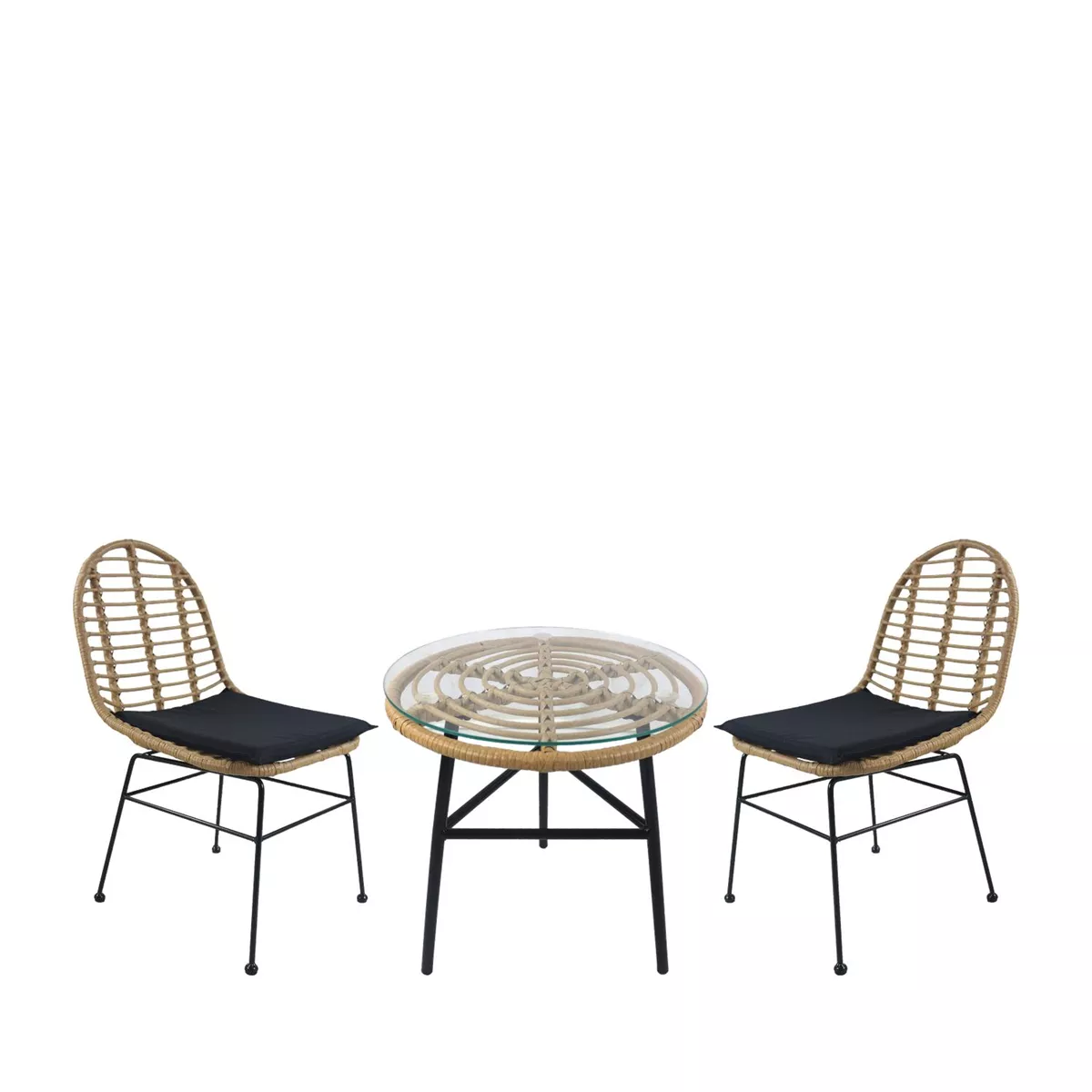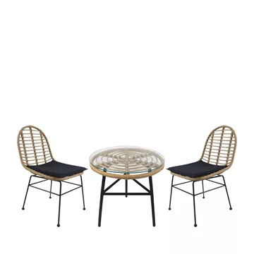 Σετ Τραπεζαρία Κήπου ArteLibre ARELLIUS Φυσικό/Μαύρο Μέταλλο/Rattan/Γυαλί Με 2 Καρέκλες 14990325