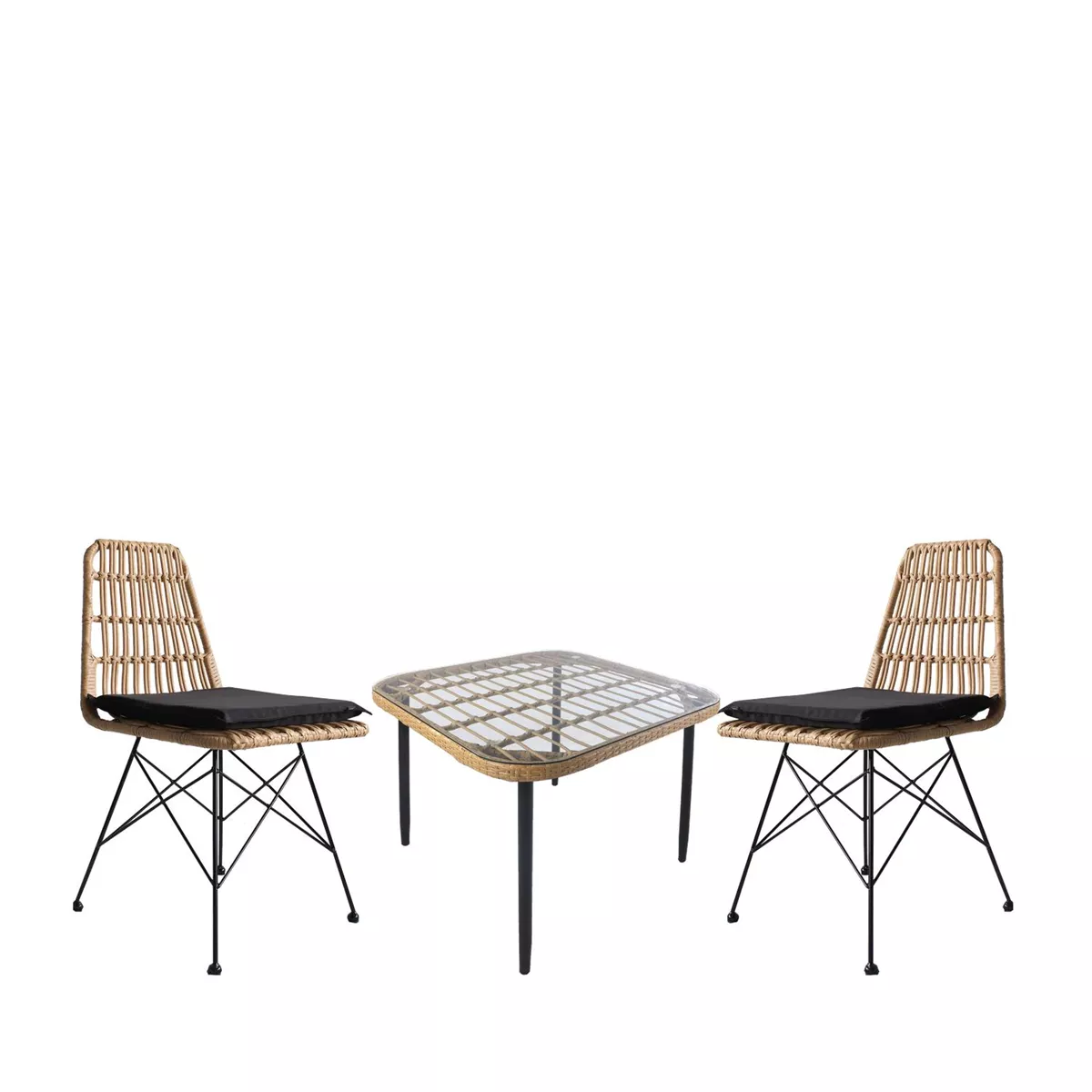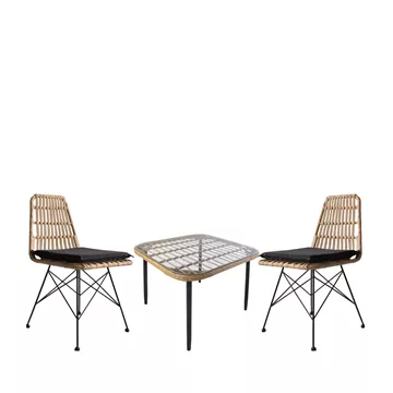Σετ Τραπεζαρία Κήπου ArteLibre ANTIUS Φυσικό/Μαύρο Μέταλλο/Rattan/Γυαλί Με 2 Καρέκλες 14990328