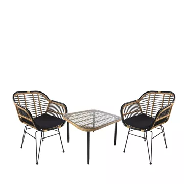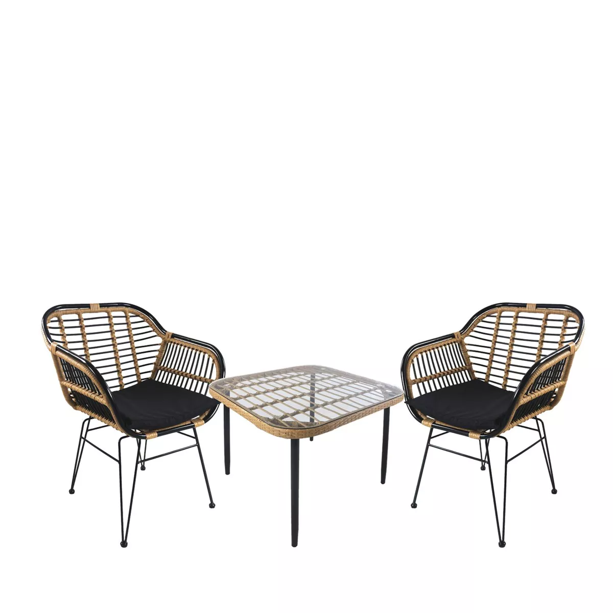Σετ Τραπεζαρία Κήπου ArteLibre ANTIUS Φυσικό/Μαύρο Μέταλλο/Rattan/Γυαλί Με 2 Καρέκλες 14990332