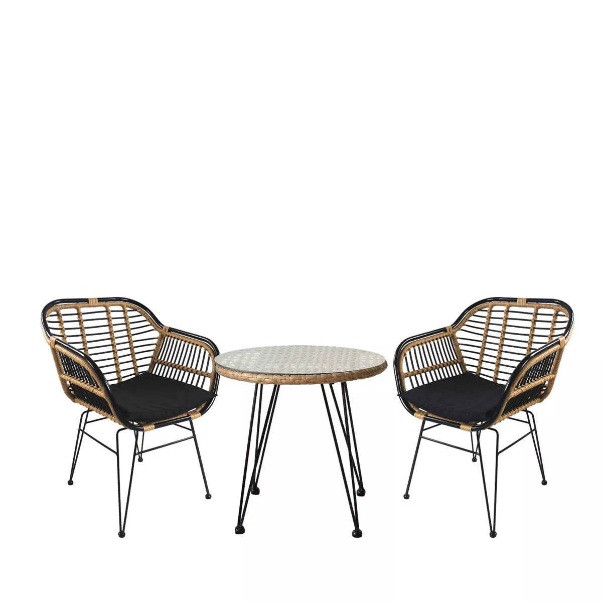 Σετ Τραπεζαρία Κήπου ArteLibre EUSEBIO Φυσικό/Μαύρο Μέταλλο/Rattan Με 2 Καρέκλες 14990334