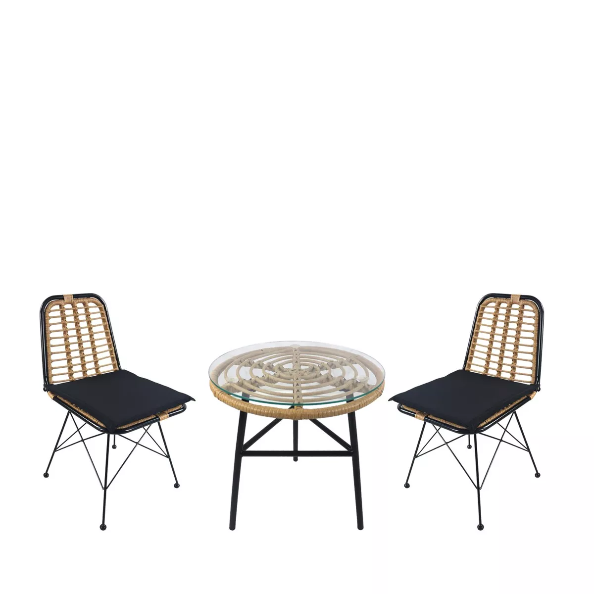 Σετ Τραπεζαρία Κήπου ArteLibre ARELLIUS Φυσικό/Μαύρο Μέταλλο/Rattan/Γυαλί Με 2 Καρέκλες 14990341