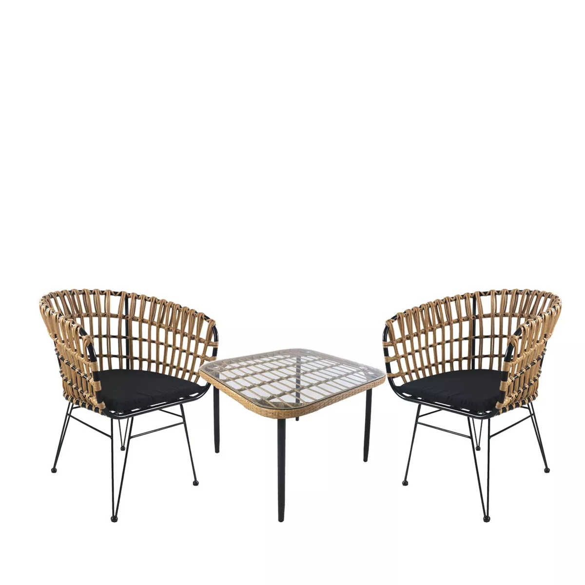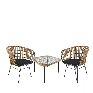 Σετ Τραπεζαρία Κήπου ArteLibre ANTIUS Φυσικό/Μαύρο Μέταλλο/Rattan/Γυαλί Με 2 Καρέκλες 14990344