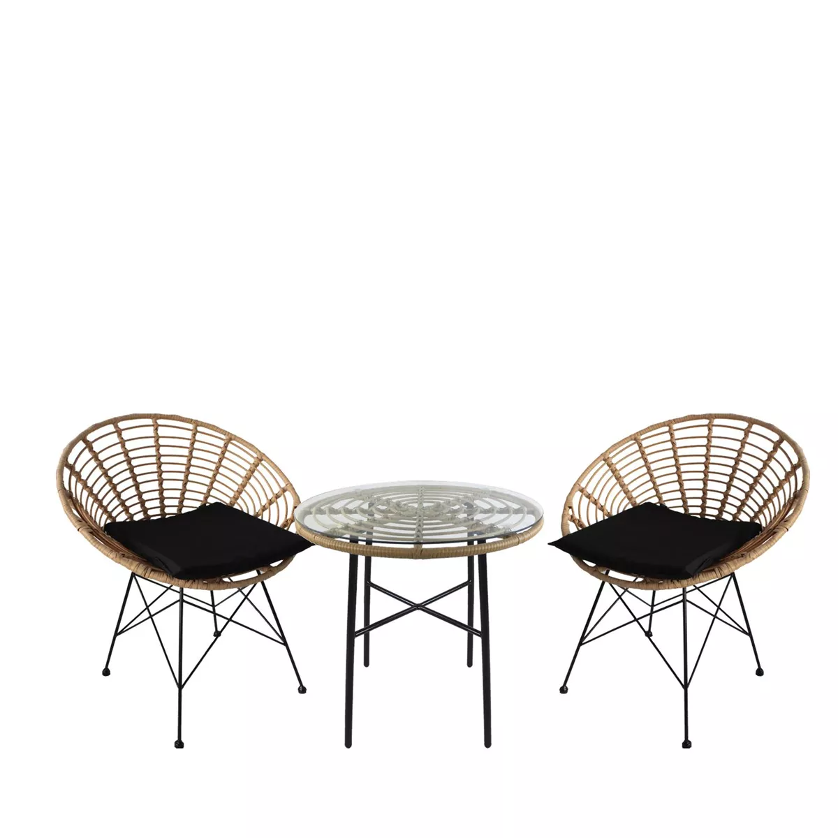 Σετ Τραπεζαρία Κήπου ArteLibre APPIUS Φυσικό/Μαύρο Μέταλλο/Rattan/Γυαλί Με 2 Καρέκλες 14990347