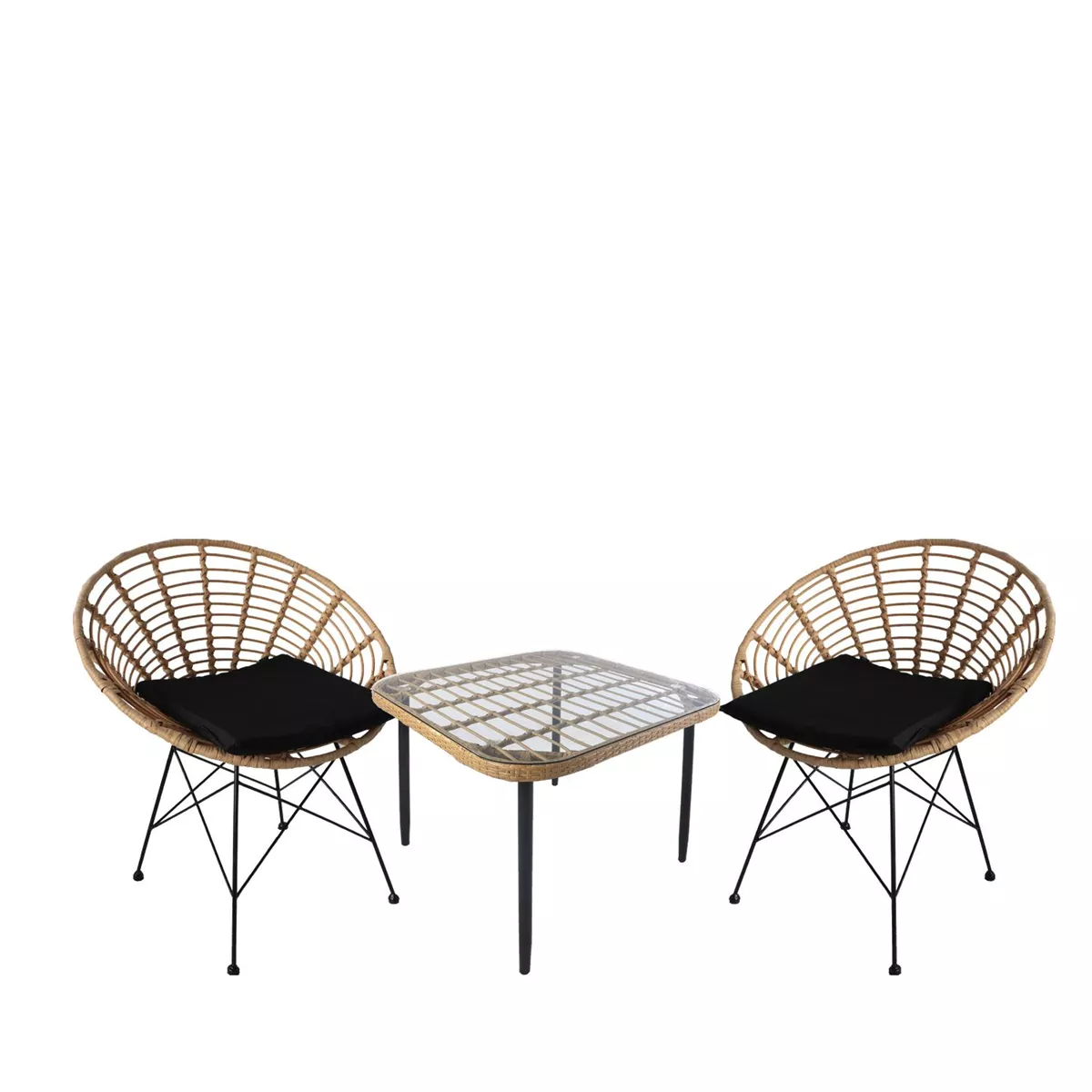 Σετ Τραπεζαρία Κήπου ArteLibre ANTIUS Φυσικό/Μαύρο Μέταλλο/Rattan/Γυαλί Με 2 Καρέκλες 14990348