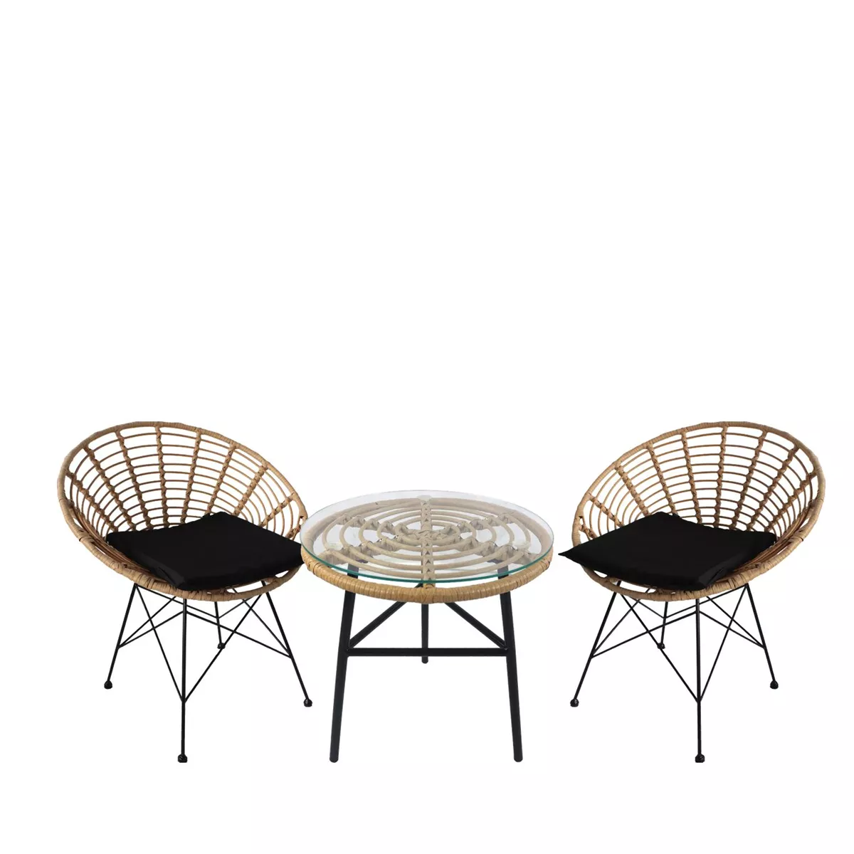 Σετ Τραπεζαρία Κήπου ArteLibre ARELLIUS Φυσικό/Μαύρο Μέταλλο/Rattan/Γυαλί Με 2 Καρέκλες 14990349