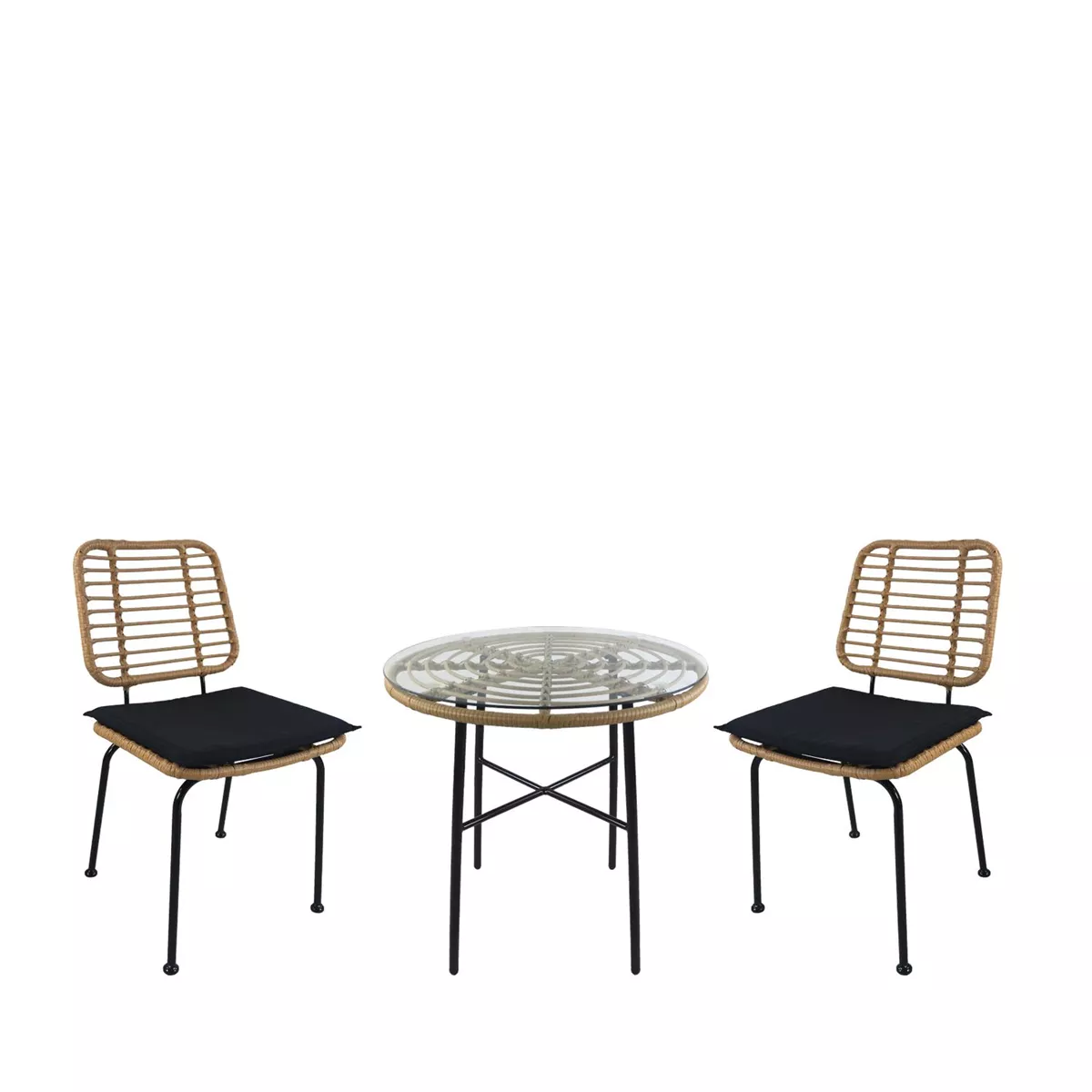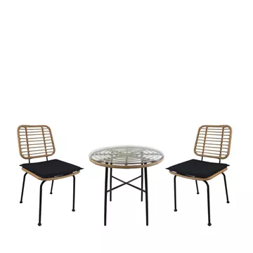 Σετ Τραπεζαρία Κήπου ArteLibre APPIUS Φυσικό/Μαύρο Μέταλλο/Rattan/Γυαλί Με 2 Καρέκλες 14990351