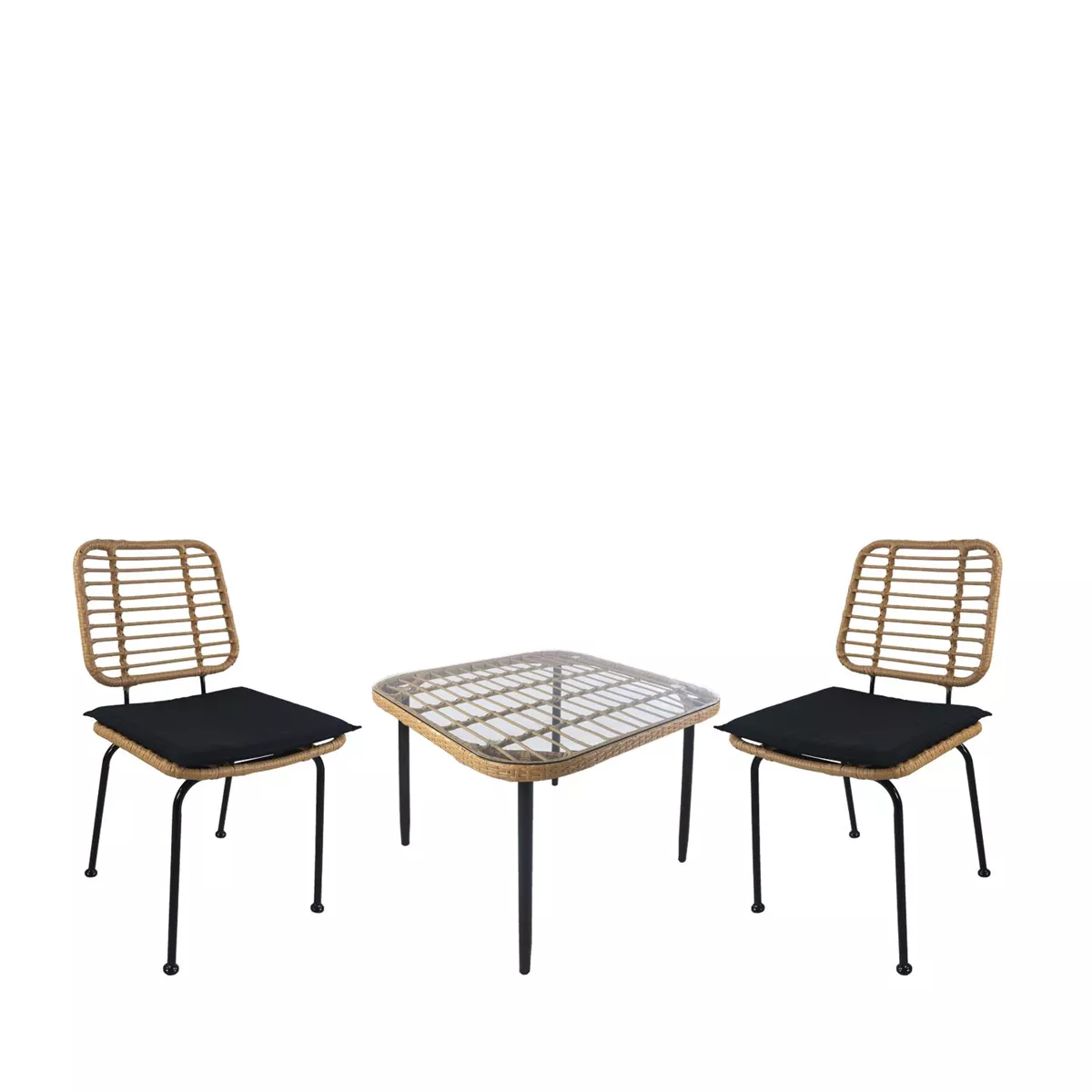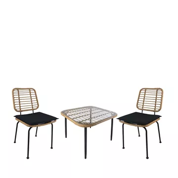 Σετ Τραπεζαρία Κήπου ArteLibre ANTIUS Φυσικό/Μαύρο Μέταλλο/Rattan/Γυαλί Με 2 Καρέκλες 14990352