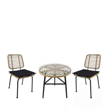 Σετ Τραπεζαρία Κήπου ArteLibre ARELLIUS Φυσικό/Μαύρο Μέταλλο/Rattan/Γυαλί Με 2 Καρέκλες 14990353