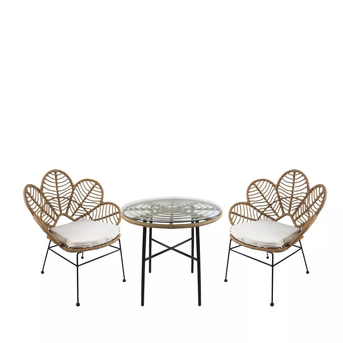 Σετ Τραπεζαρία Κήπου ArteLibre APPIUS Φυσικό/Μαύρο Μέταλλο/Rattan/Γυαλί Με 2 Καρέκλες 14990355